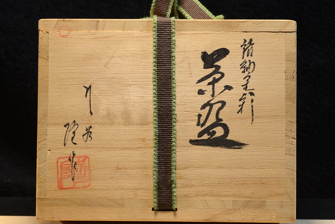 A 12,7 cm átmérőjű, 7,8 cm magas arany levelekkel díszített csésze a nagy kutani keramikus Takashi Kitamura 北村隆 (Takashi Kutani, 1946-) műhelyében készült. A műhely pecsétje a dobozon és a csésze alján is látható.