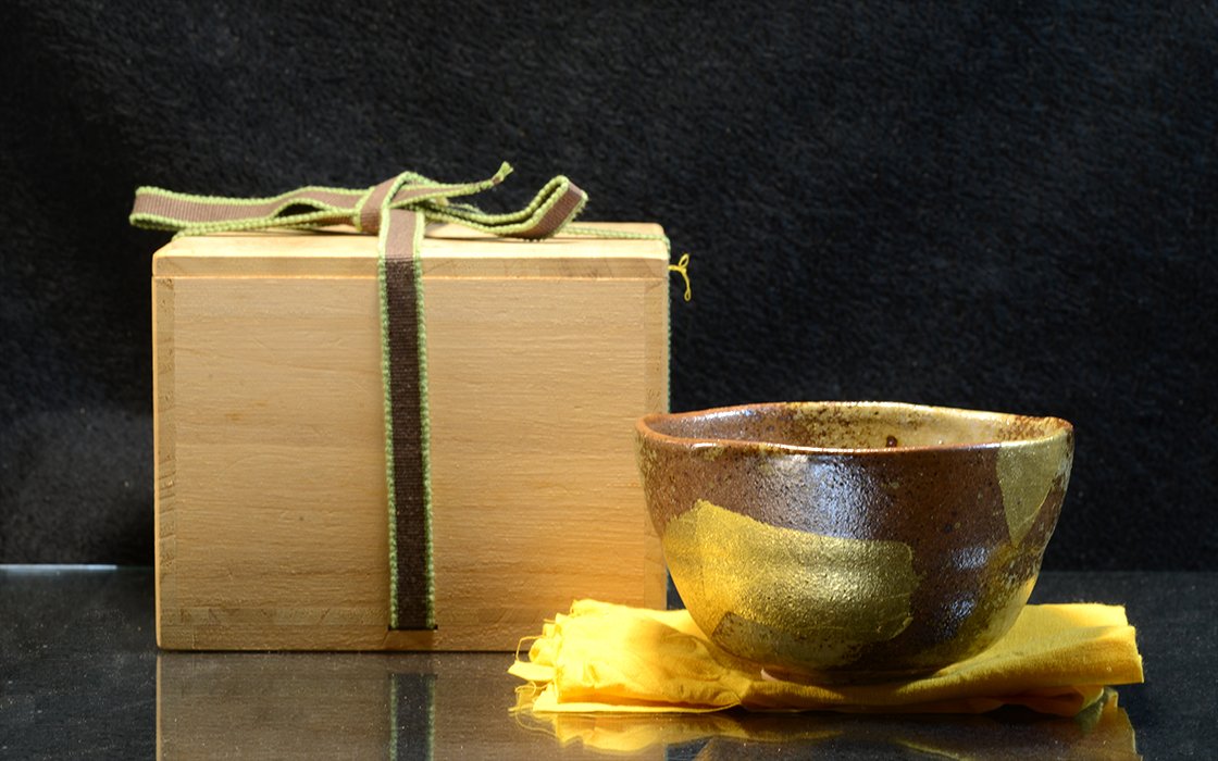 Aranyos levelek kutani chawan japán matcha teáscsésze