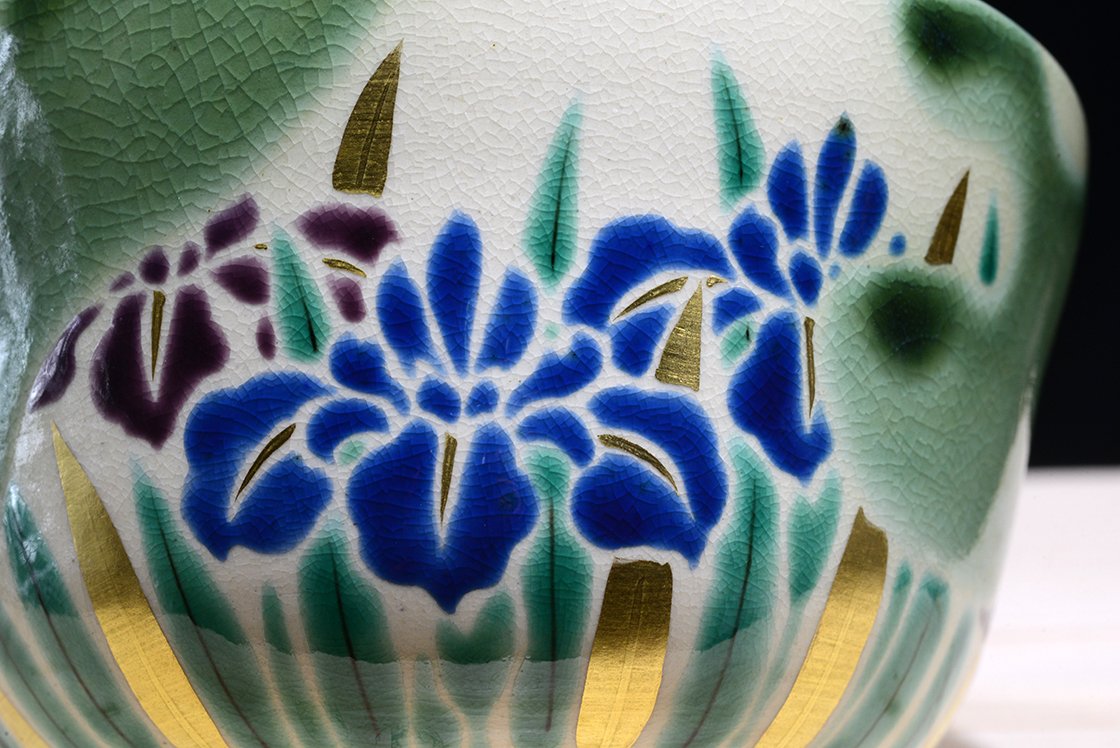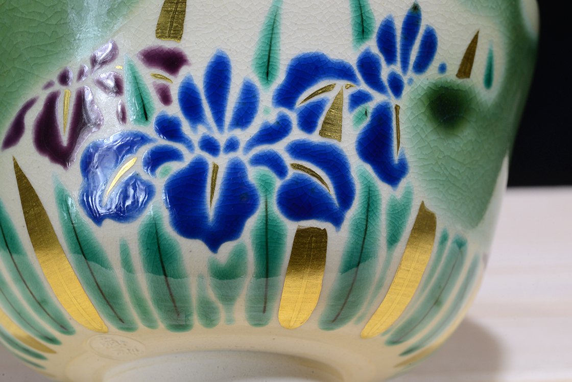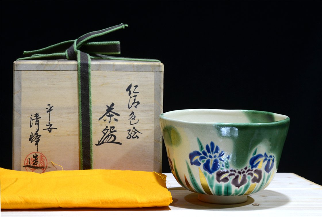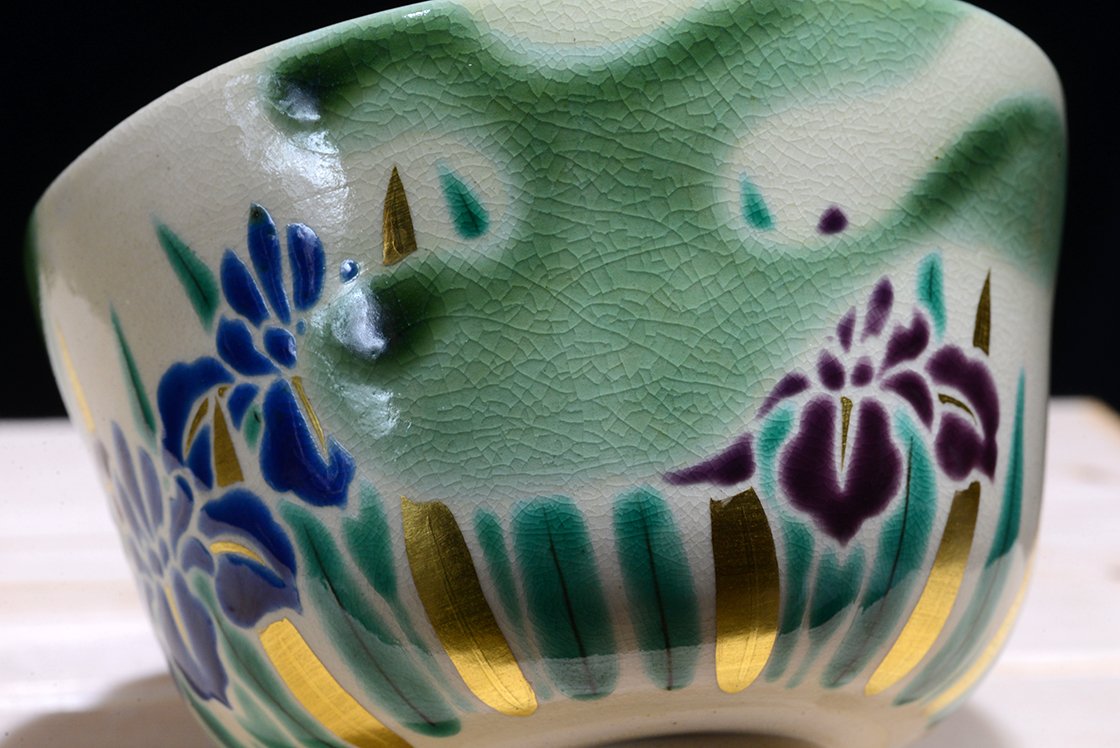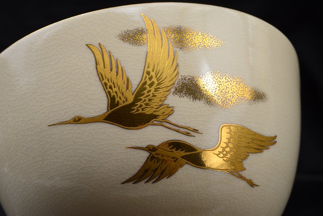 Az első látásra kutani stílusú csészét Shozan Kato kyotói műhelyében készült és mindez nem véletlen, mert az igen népszerűvé vált kato kutani származású, tulajdonképpen minden műve a kutani és a kyo kerámia fúzióját reprezentálja. Lentebb egy régebbi csészénk másik példának.