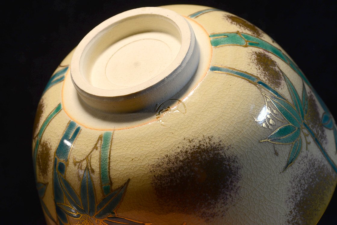 Hirai Kakuzan 平井覚山 kyotói műhelyben készült kézzel festett Kyo-yaki chawan
