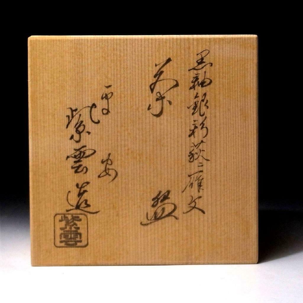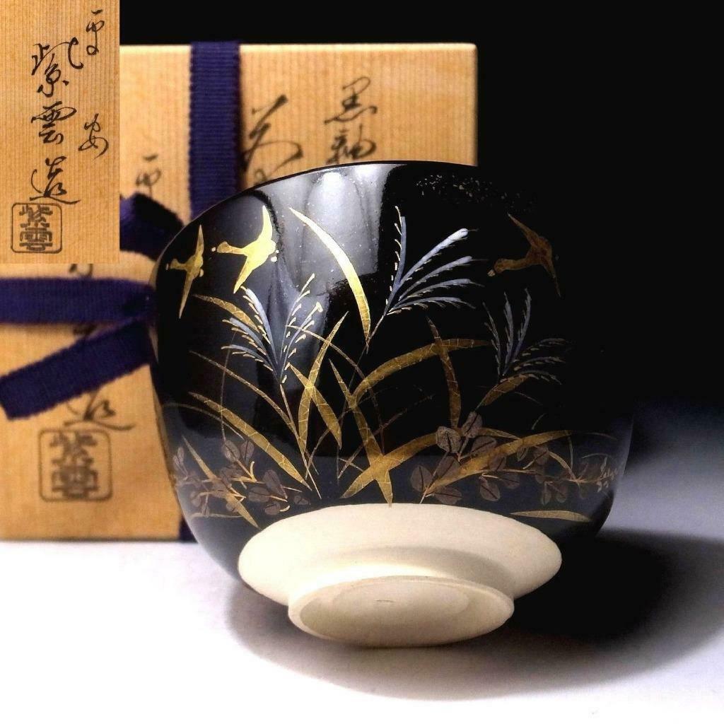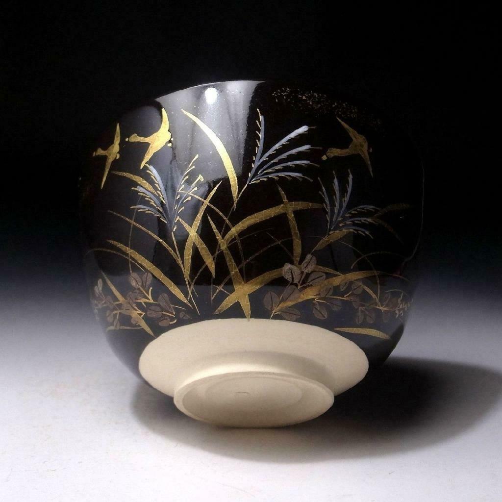 Shiun Hashimoto (1940-) apja, Jogaku, Japánban, Mandzsúriában és később Inoue Harumine műhelyében tanult. Shiun az egyik legnagyobb presztizsű japán egyetemen a Doshishán tanult, majd textiltervezéssel foglalkozott. A családi kerámia műhelyt 2003-ban vette át. Darabjai pontosan és gondosan tervezett, gyönyörűen kivitelezett „képes” kerámiák. Ez a jellegzetes Kyo stílusú chawan 14,5 cm átmérőjű, 5,7 cm magas, arany kézi festéssel díszített. A csésze eredeti fadobozában lakik.
