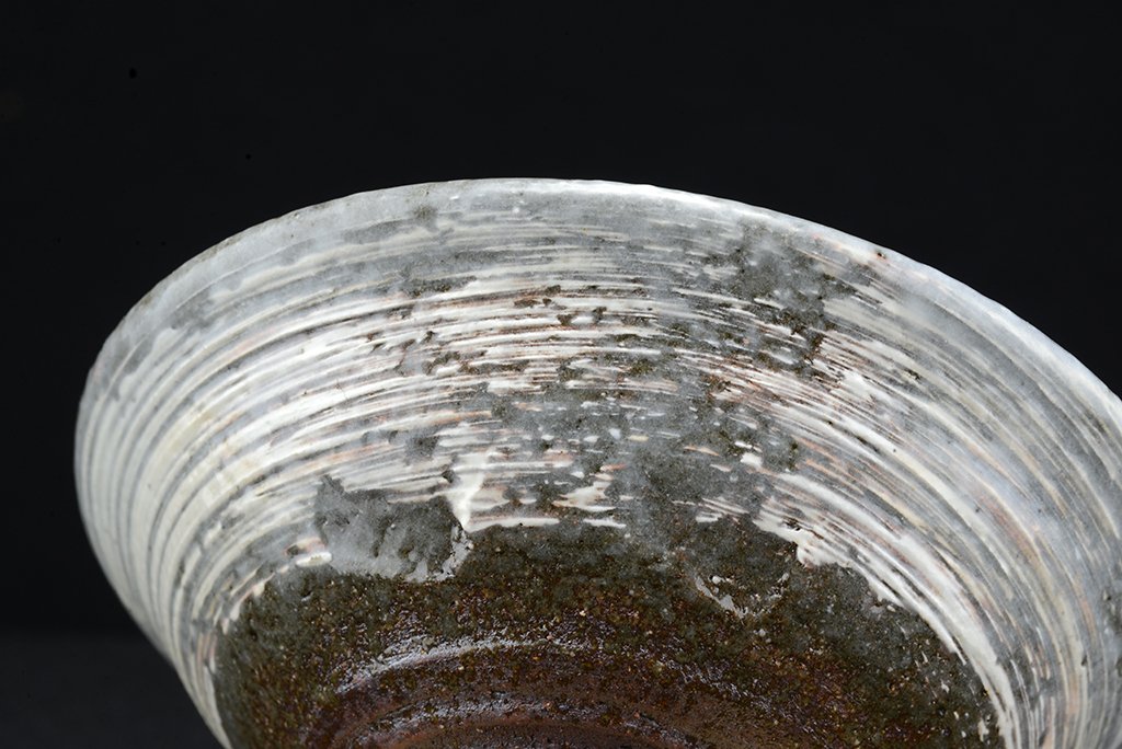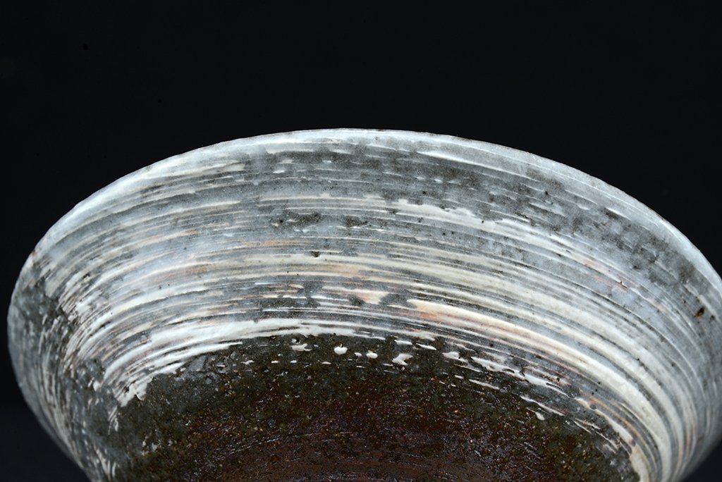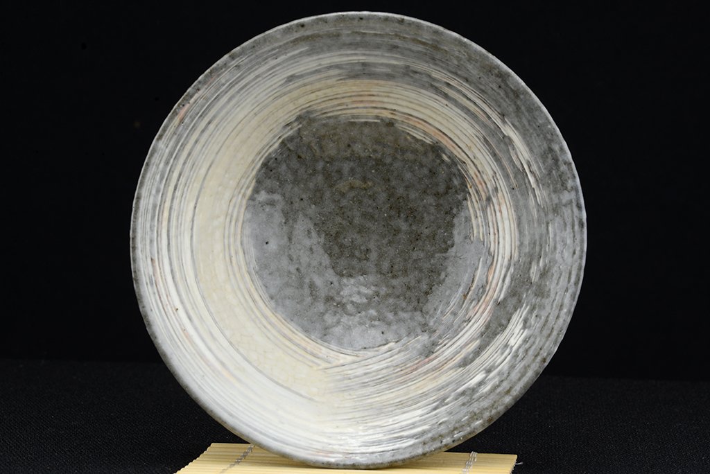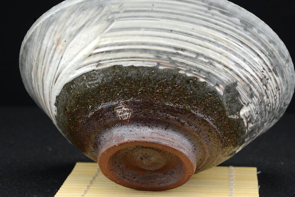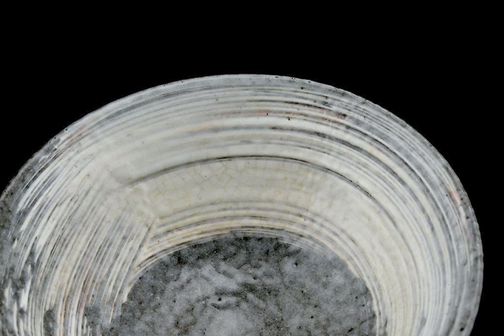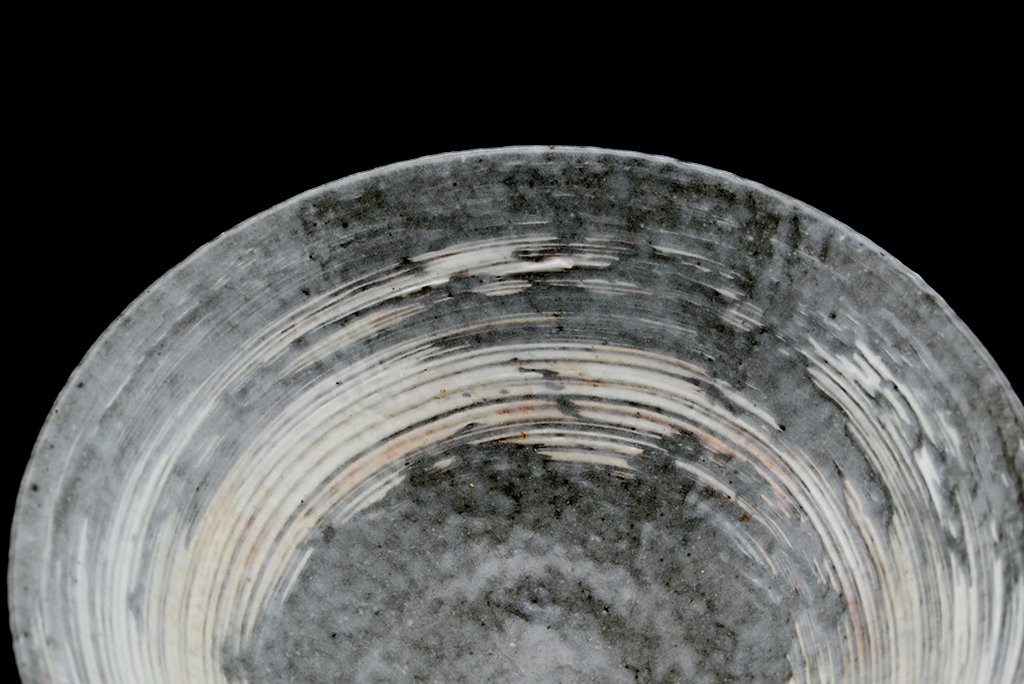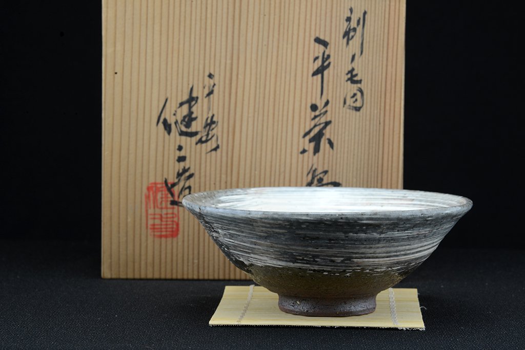 Ennek a csészéne az oldalán diszkrét horpadás jelzi finoman – te sem vagy tökéletes – én sem. Shonzui Heian kyotói műhelyében készült Hakeme teáscsésze. A hakeme a díszítés módjára vonatkozik, azt jelenti ecsetvonás, vagy ecsetnyom, és kalligráfiához használt ecset nyomára emlékeztet és utal. Itt belülről talán egy ensho minta, kívülről, meg dekoratív vonás díszíti ezt a kiegyensúlyozott csészét. Formája alapján a teaszertartásba nyári csészének használjuk. (15 cm átmérőjű, 7 cm magas)