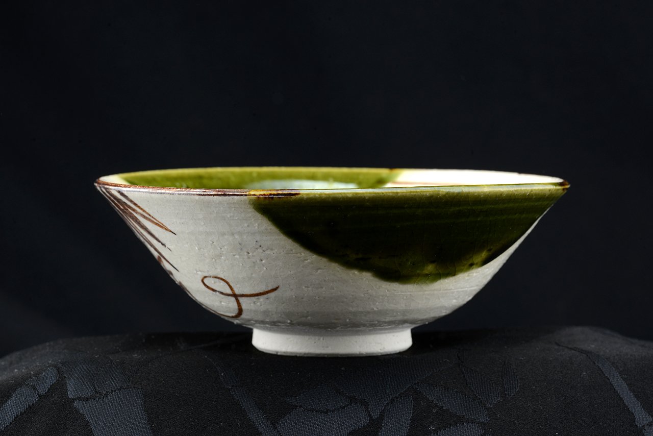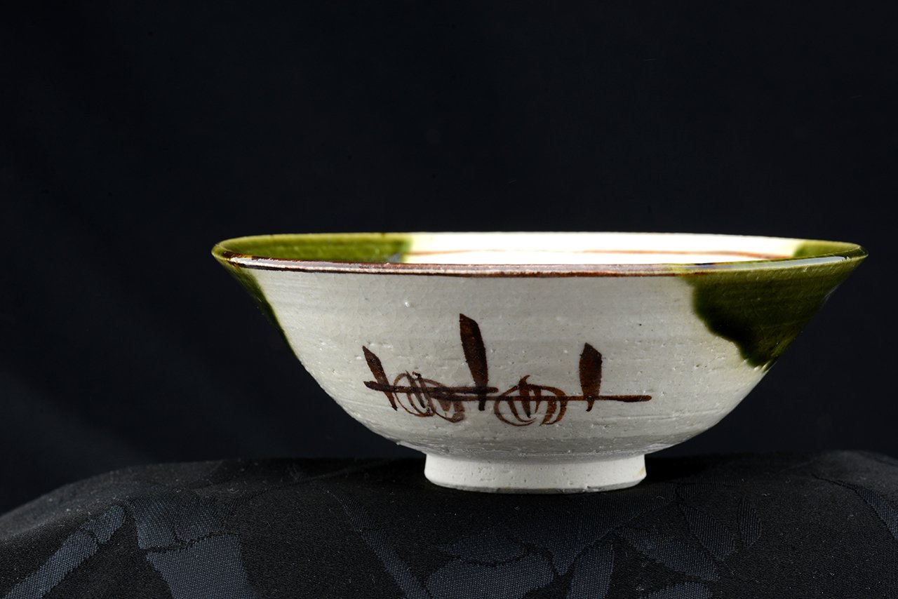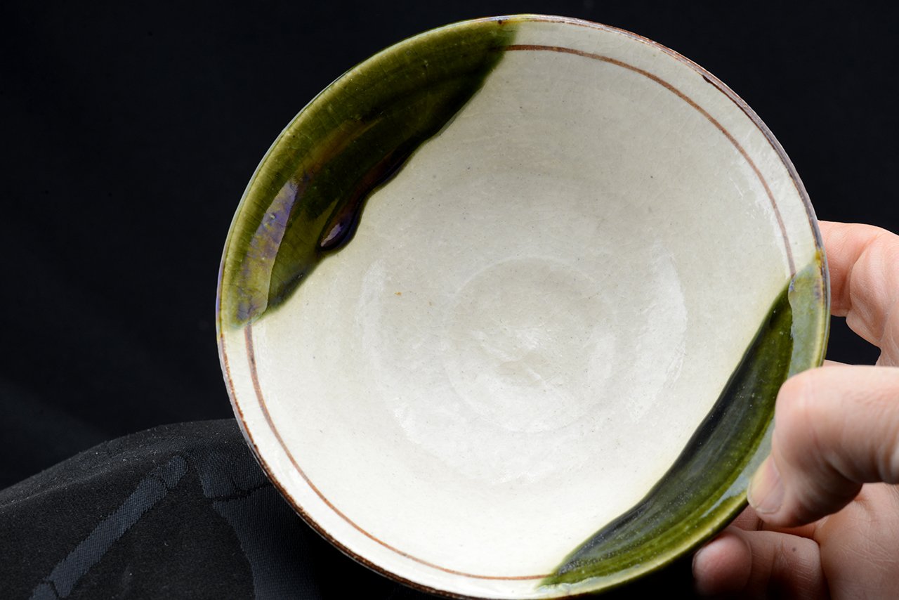 Széles, kényelmes, nyári Oribe teáscsésze, ami 14,5 cm széles 5,5 cm magas0