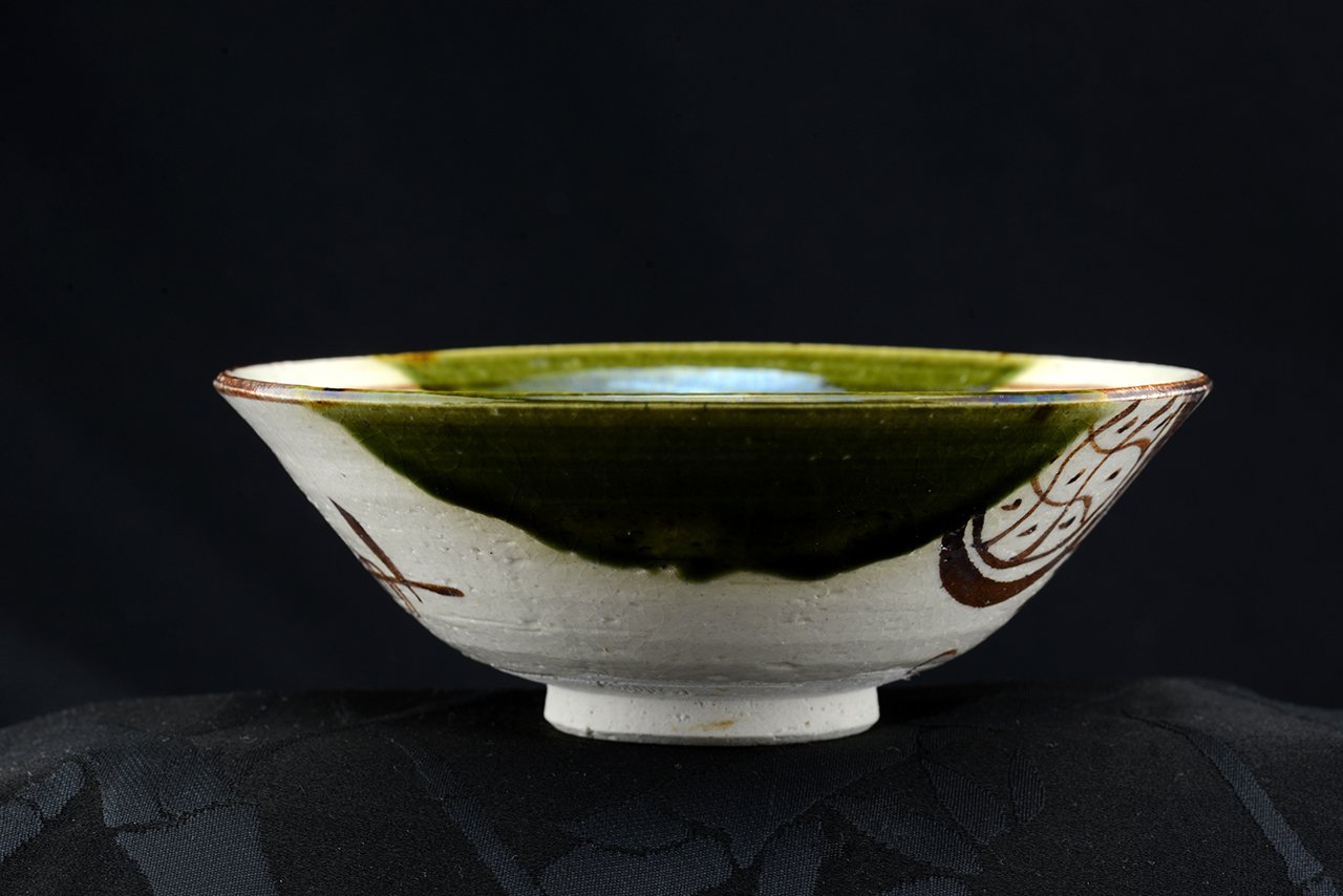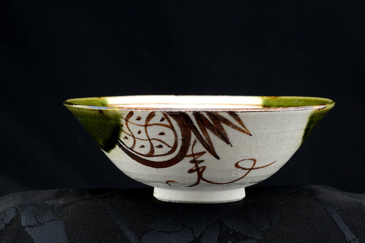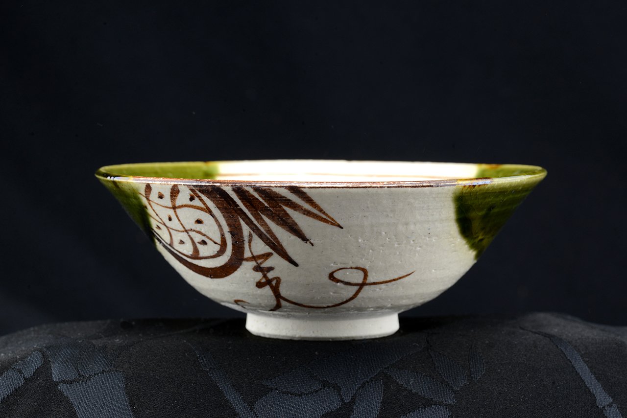 Széles, kényelmes, nyári Oribe teáscsésze, ami 14,5 cm széles 5,5 cm magas0