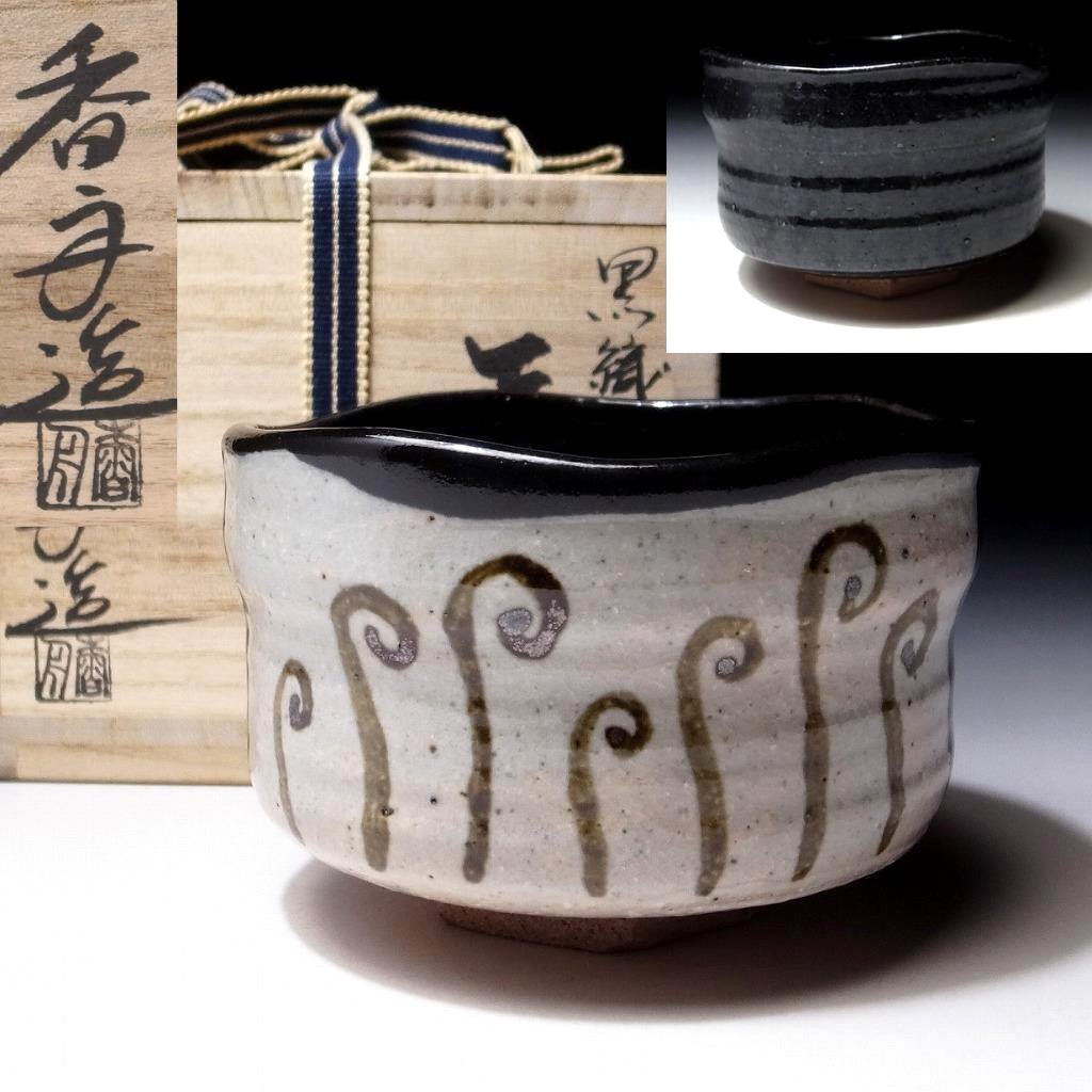 Koshu Nishio warabi oribe chawan japán matcha teáscsésze