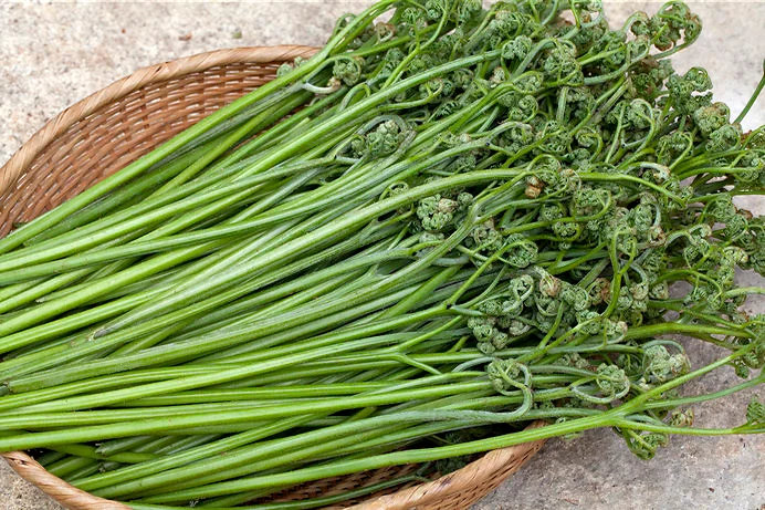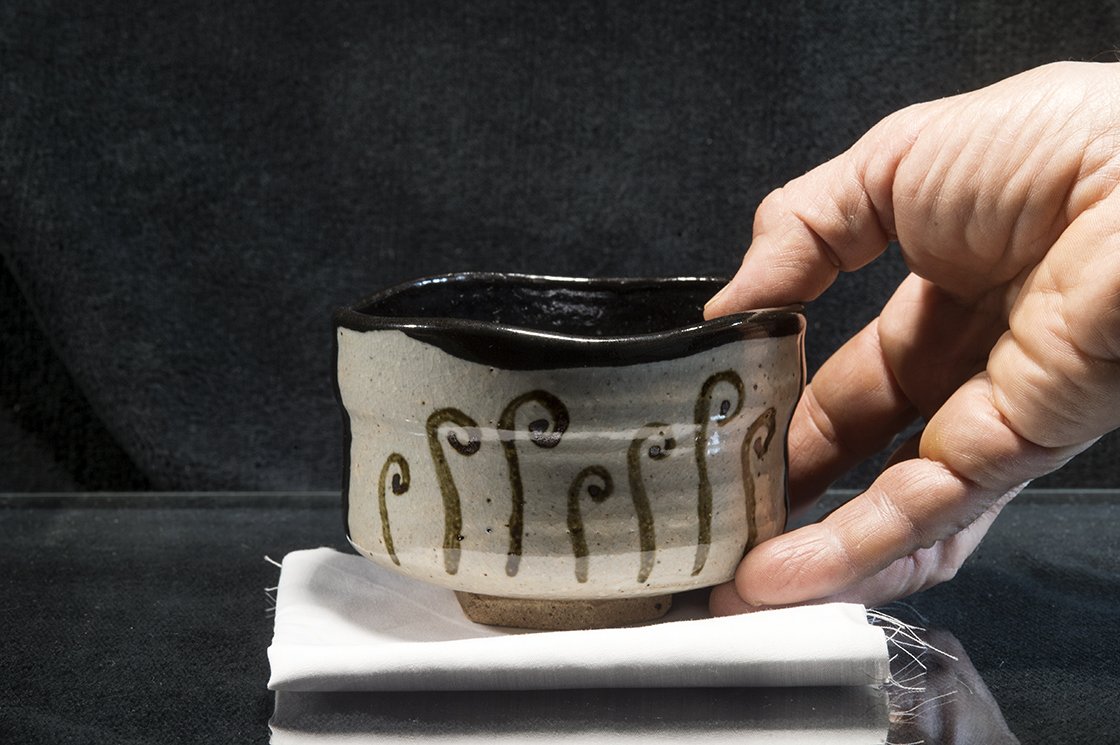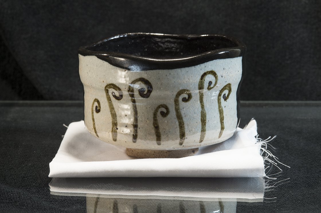 A csészén látható rajzolat a saspáfrány (japánul warabi 蕨, ワラビ), fiatal hajtásait ábrázolja. Ezt az enyhén mérgező, rákkeltő elemeket tartalmazó páfrányfajt az egész világon előszeretettel fogyasztják ételként és édességként. A gyökér keményítőt tartalmaz ez elkerülhetetlenül vezetett a warabi mochi feltalálásához.