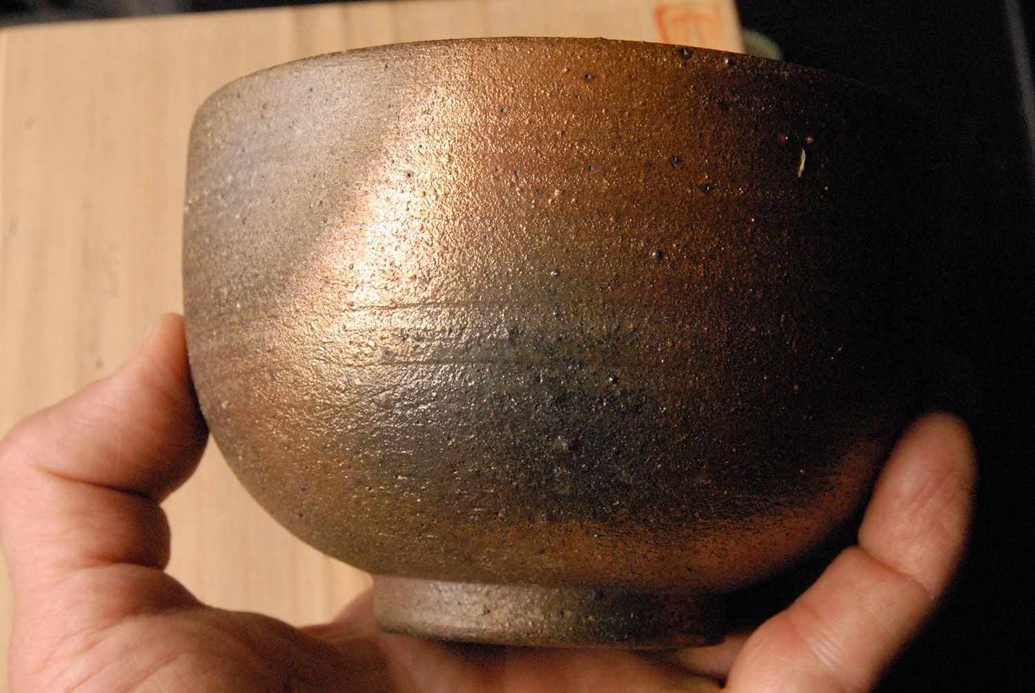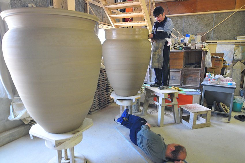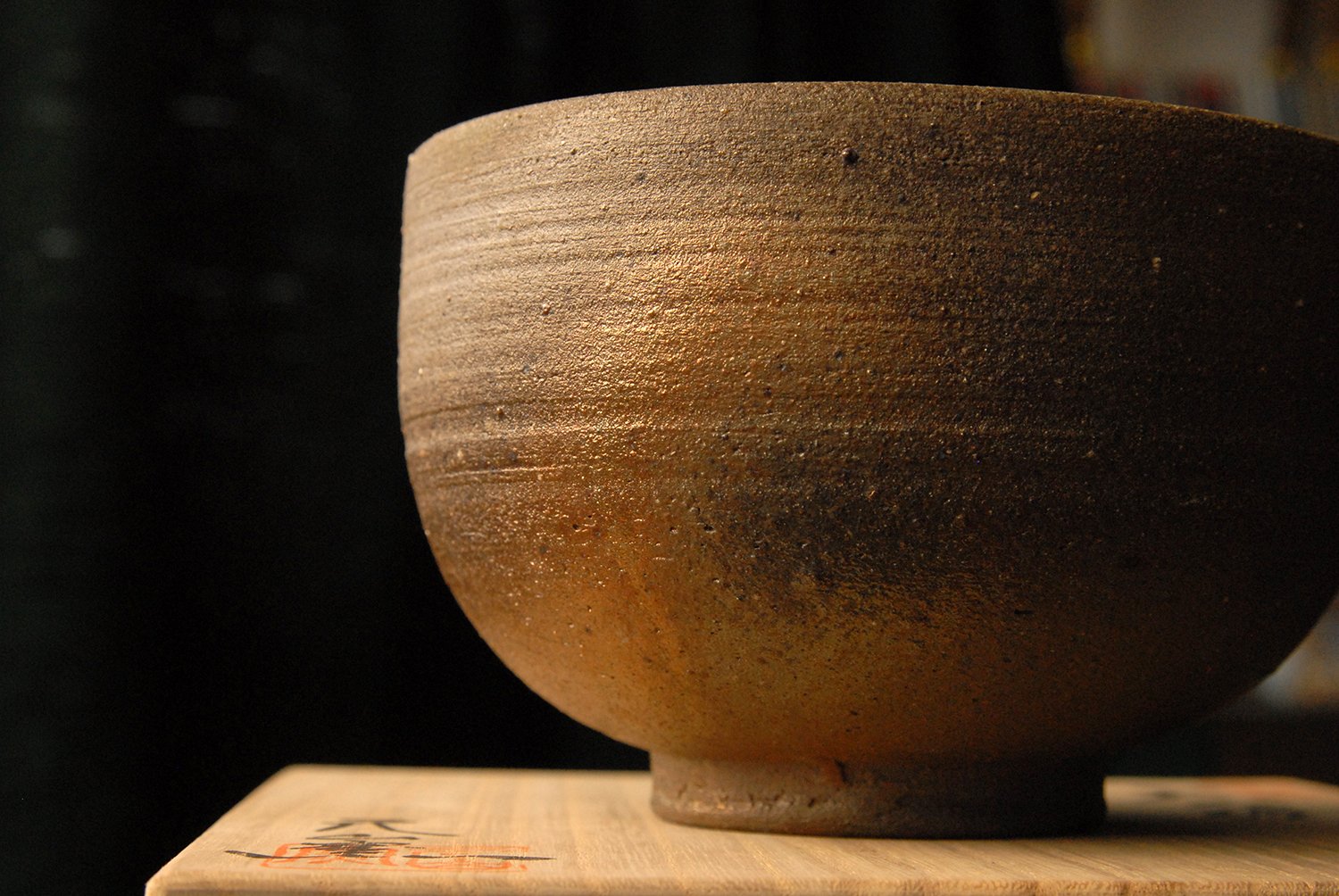 Kevéssé ismert, de annál szebb és érdekesebb az Ōtani kerámia (大谷焼, Ōtani-yaki) Shikoku szigetéről Tokushima prefektúrából. Shikokun lényegében ismeretlen volt a kerámiakészítés, mígnem a 18. században Otaniban alapított műhelyben porcelán gyártásába fogtak, tea és étkészleteket gyártottak, de a nagy konkurrencia miatt hamar elment a kedvük a macerás, kevés haszonnal kecsegtető munkától. A befuccsolt műhelyt egy helyi kereskedő, Sozaemon Kasai vette át, aki indigóban utazott (tintapatron – hogy értsétek) és tárolóedényekre volt szüksége. Így született az Ōtani különös ismertetőjegye, hogy a helyi, nagy vastartalmú agyagból hatalmas vázákat, tartóedényeket gyártottak. Igen ám, de hogy lehet korongon megforgatni egy két méter magas köcsögöt? Úgy, hogy egy ember aláfekszik és tökéletes összhangban a keramikussal, nagyokat nyögve, lábbal forgatja a korongot. Mára a vegyipar fölöslegessé tette a természetes indigó gyártását, ekkora vázák ugye sehova se kellenek, így a mai otani keramikusok visszatértek az étkészletekhez és a tea eszközökhöz. A fémes megjelenésű, finom textúrájú agyag gyönyörően emeli ki a tárgyak rusztikusságát, a klímaváltozás miatt megolvadó gleccserekben gyönyörködő kékgalléros munkás kékítő helyett ragyogó matchát old az otaniban formázott csészékben.