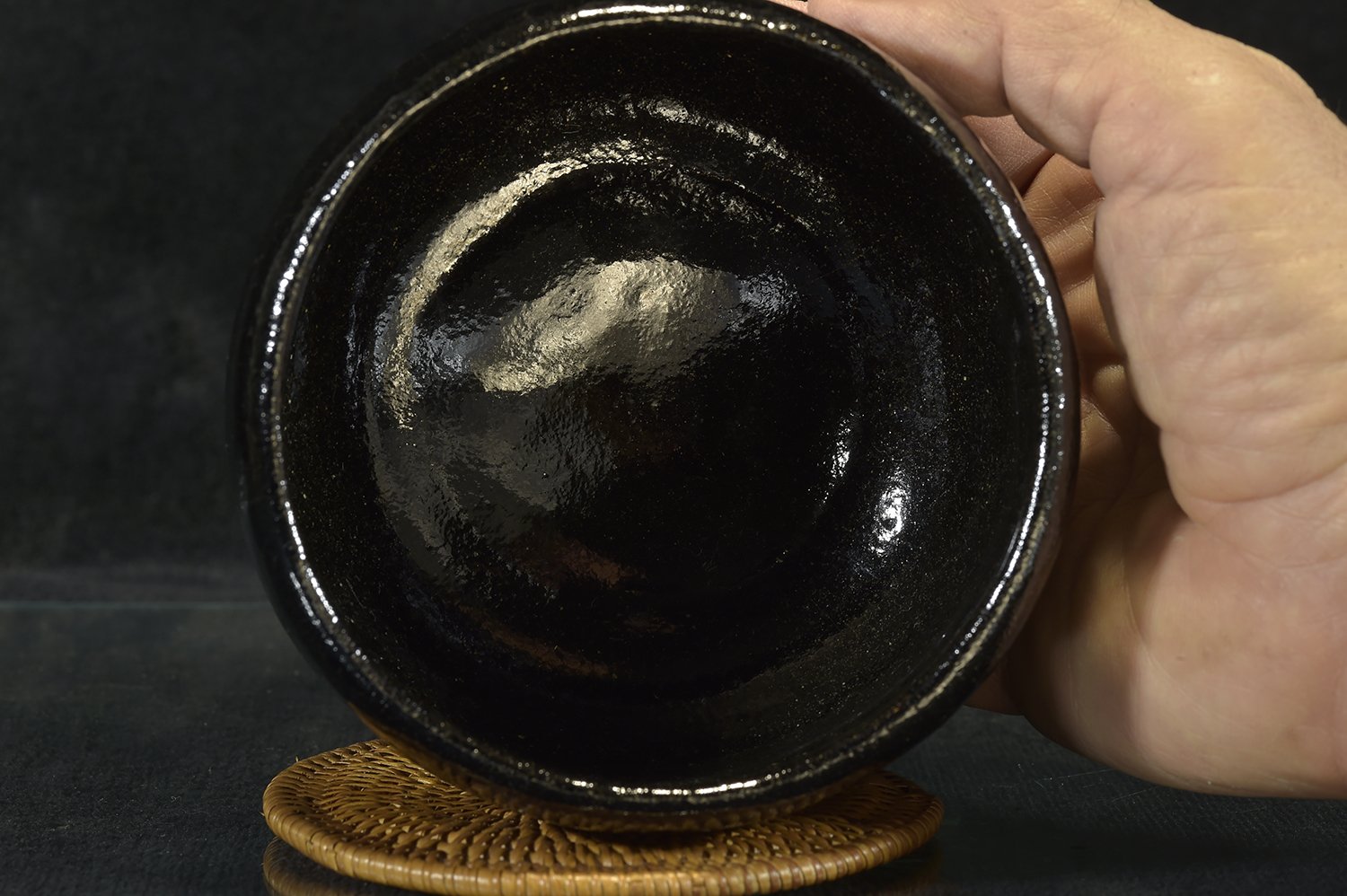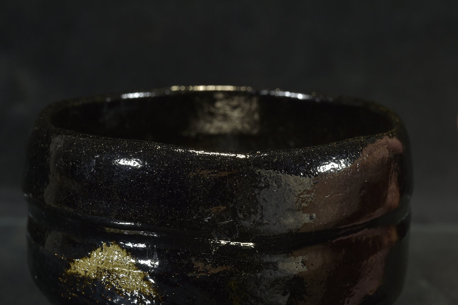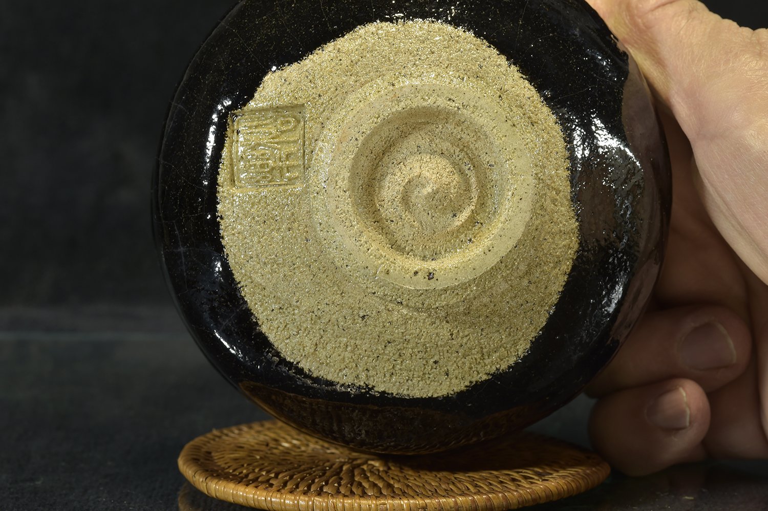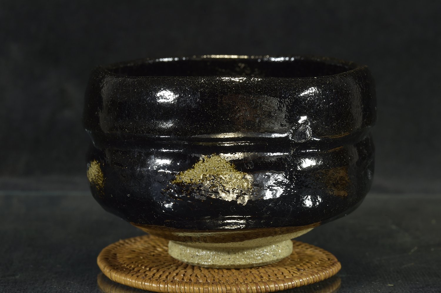 11,8r cm átmérőjű, 8,2 cm magas kuro raku chawan Shoraku Sasaki műhelyéből. A chawan a Daitokuji templom részére készült, amelynek hivatalos keramikusa más magasan jegyzett keramikusok mellett Sasaki műhelye.