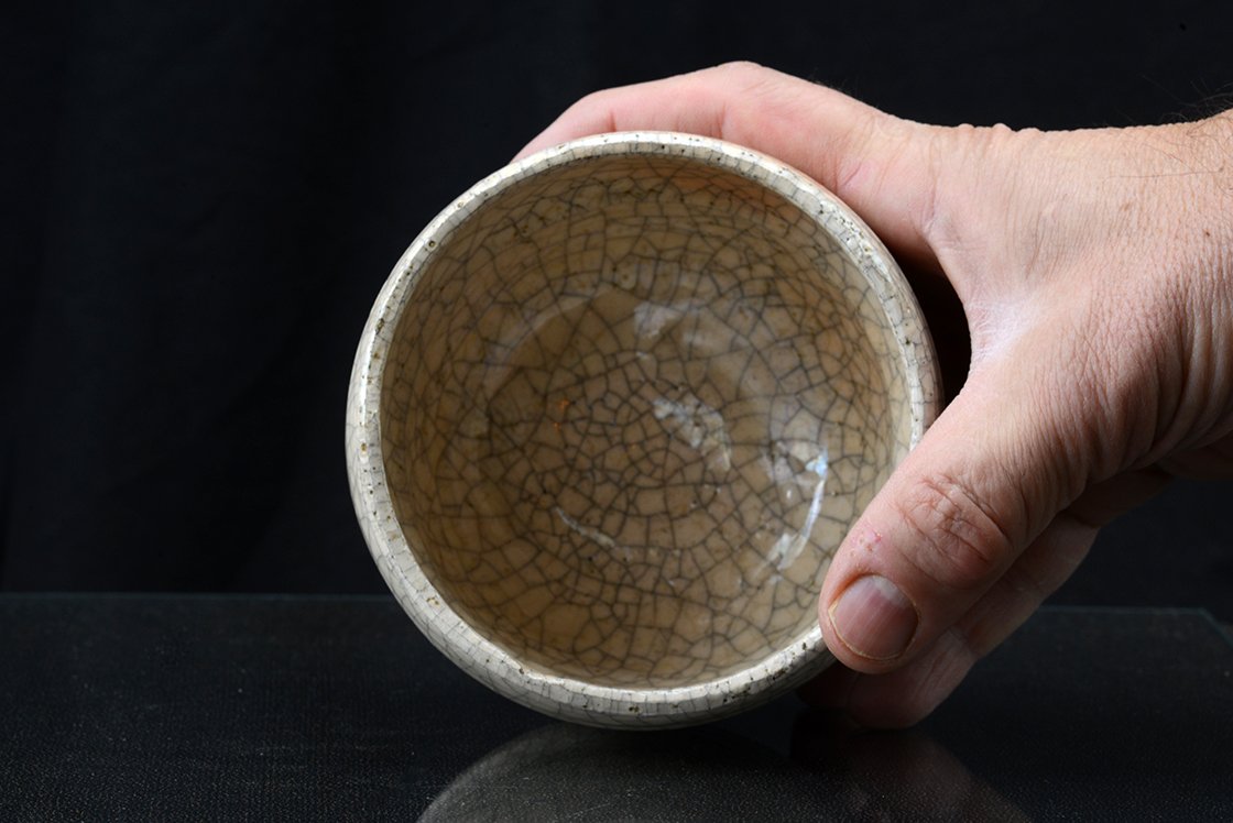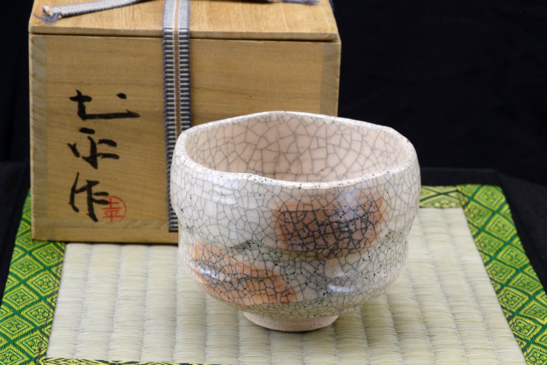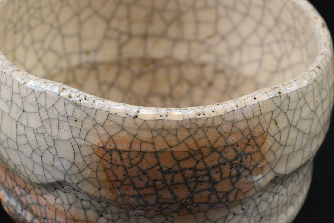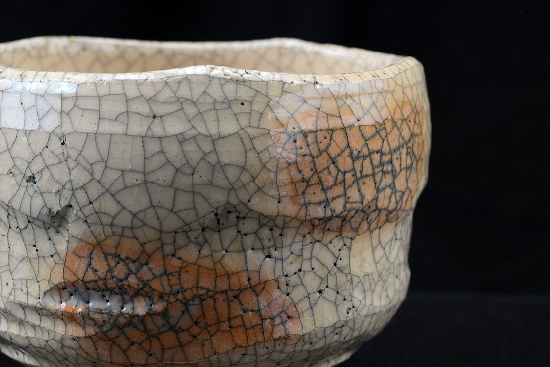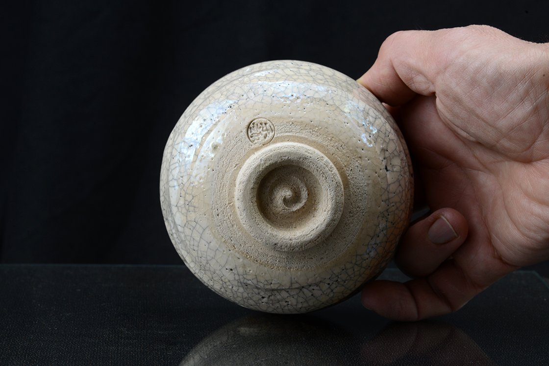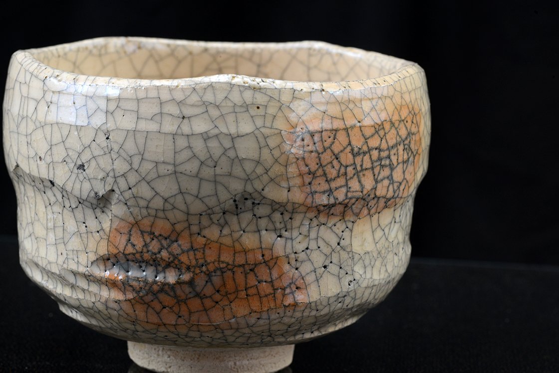 Ritka fehér raku chawan töredezett mázzal.