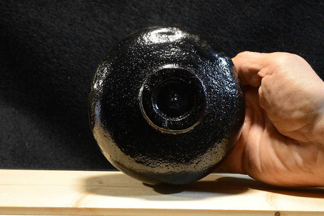 Klasszikus raku abban az értelemben, hogy nincs egytlen fix pontja sem, minden pillanatban más arcát mutatja. Mint minden különleges minőségű raku tárgyban, ebben is nagy a kiégetéskor keletkezett feszültség, koccintásra cseng, mint egy csengő.