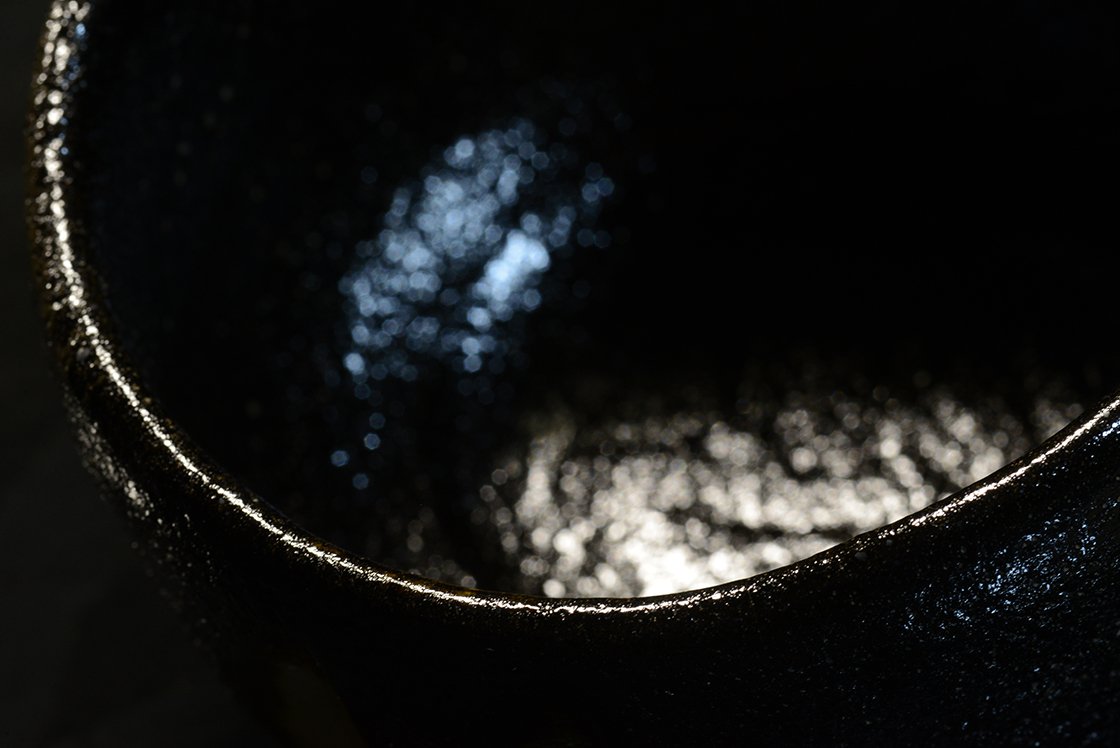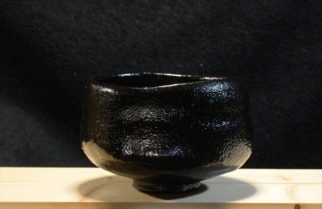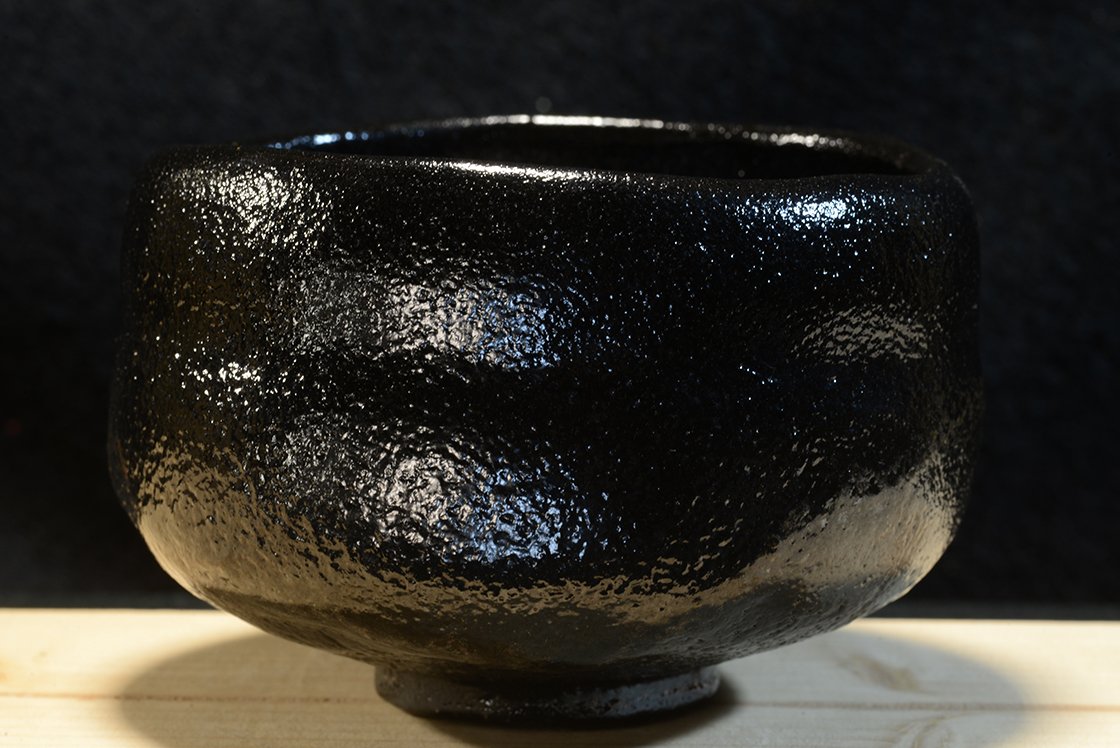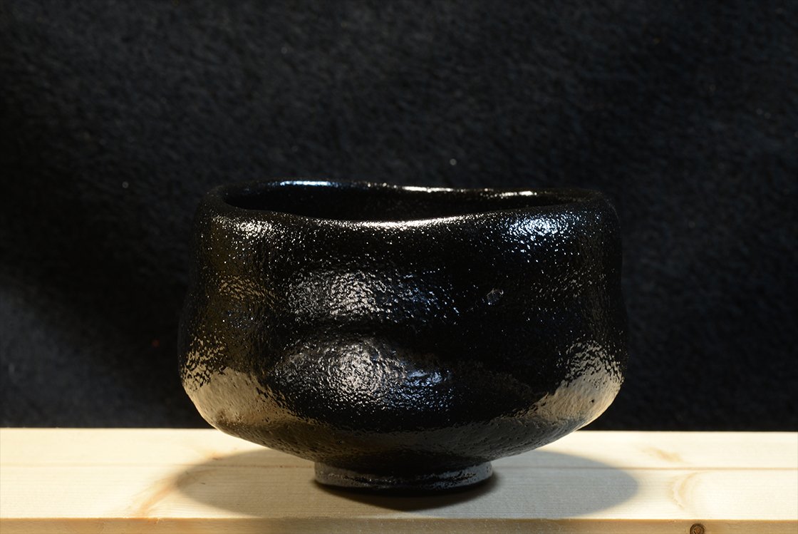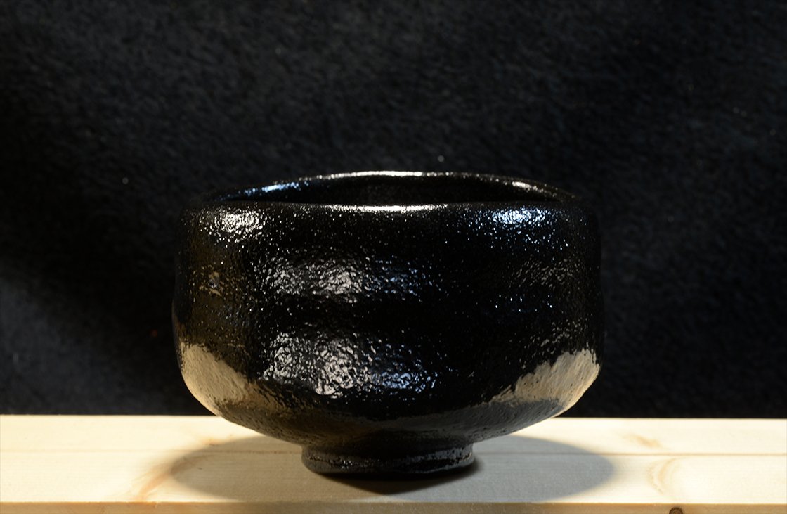 Kuro raku chawan matcha teáscsésze Koki Kosimune műhelyéből.