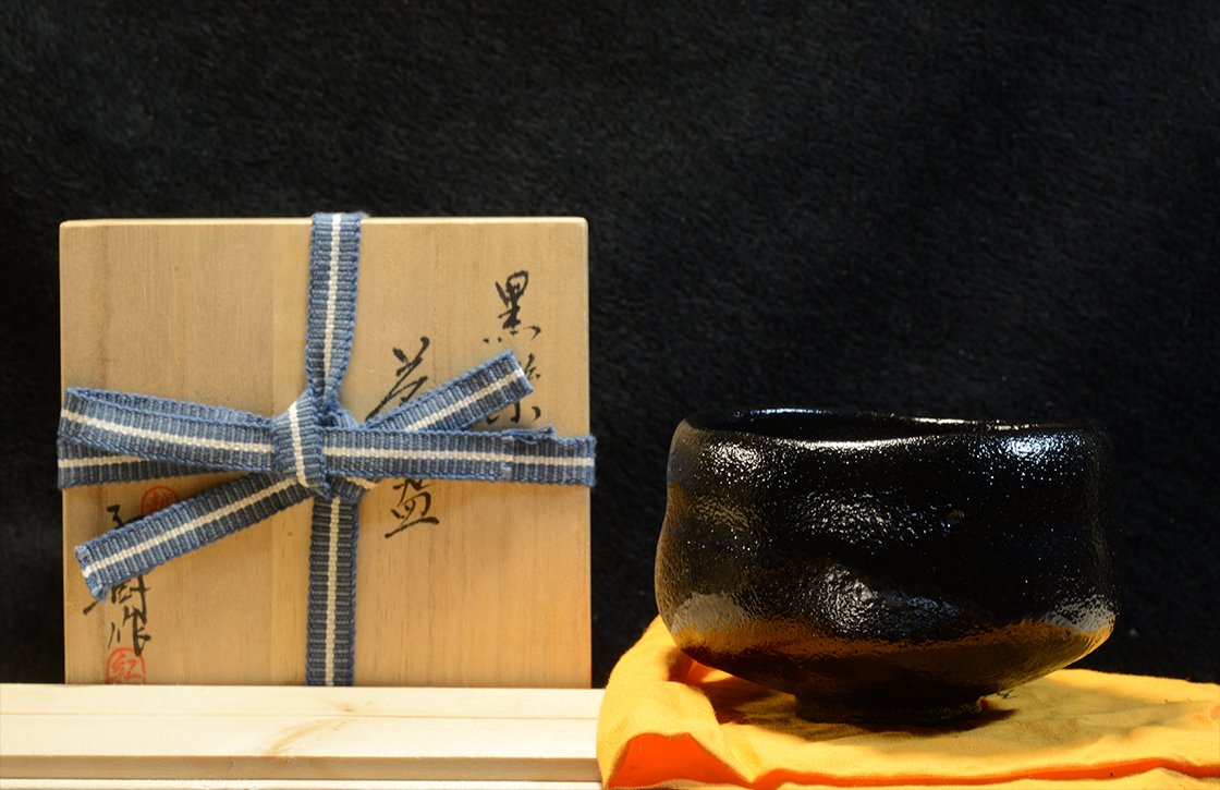 Fekete Kuro raku chawan matcha csésze
