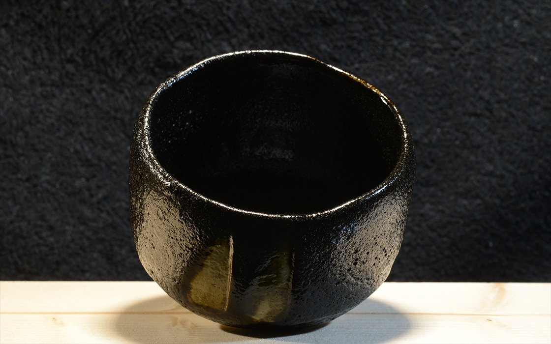Szintén raku technikát használ, de főként egy árnyalatú, ámbra színű mázzal az Ohi kerámia, aminek nagymestere a közelmúltban járt Magyarországon, erről itt számoltunk be.