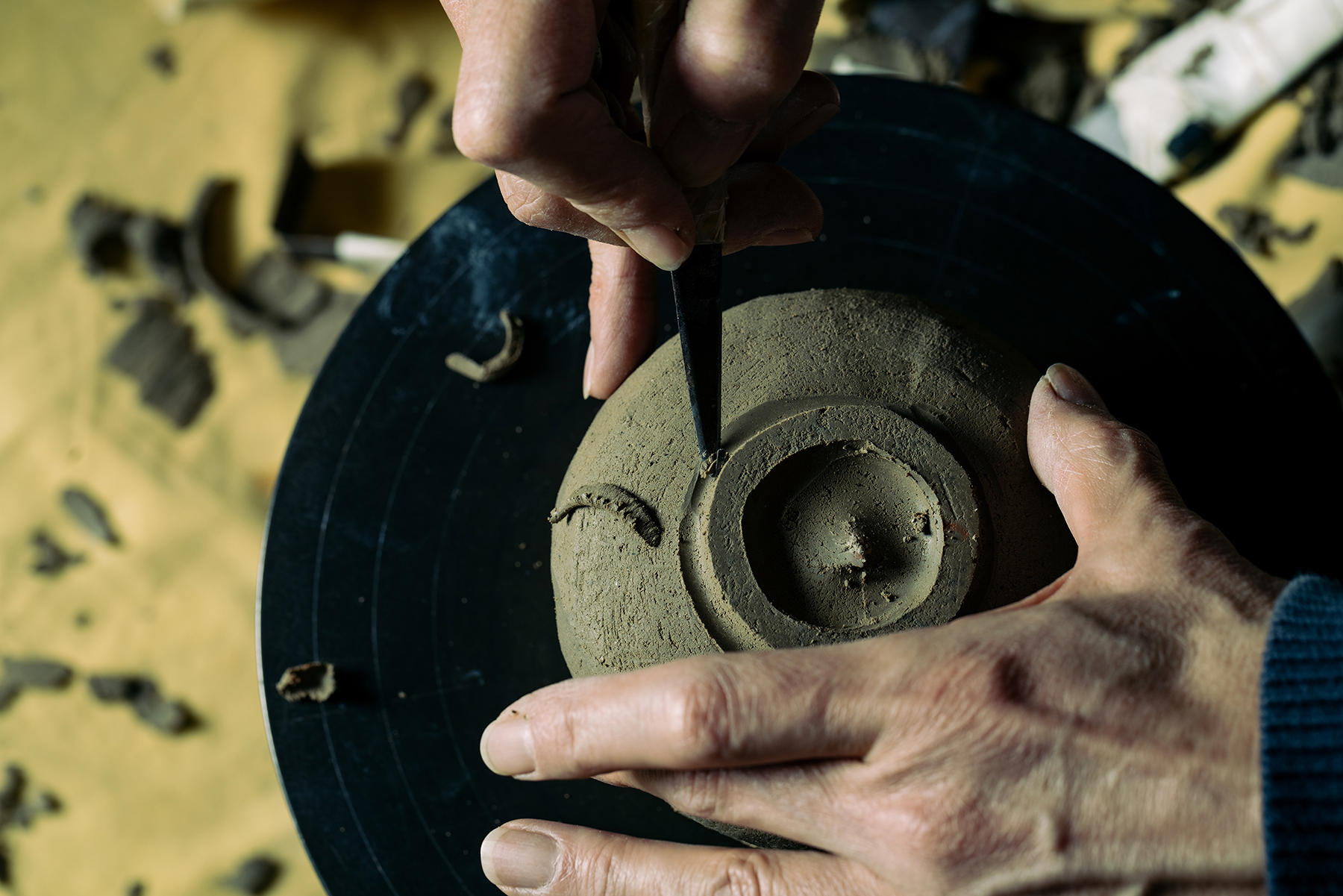 Szintén raku technikát használ, de főként egy árnyalatú, ámbra színű mázzal az Ohi kerámia, aminek nagymestere a közelmúltban járt Magyarországon, erről itt számoltunk be.