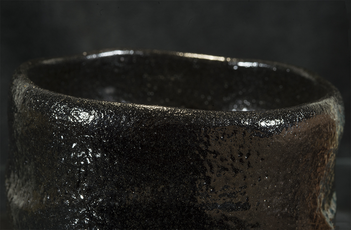 11,8 cm átmérőjű, 8 cm magas raku csésze Ichiraku Nishimura (1952-) műhelyéből, amit a Daitokuji Templom megrendelésére készített. Ichiraku Nishimura Kyotóban él, műhelye a Hoen-gama Ayabe hegyei között. 1973-tól tanult Naoe Deguchi és Kugo Ono irányítása alatt tőlük is több darabot bemutattunk már. 1980-ban vált önálló keramikussá, ekkor kapta Deguchitól az ‘Ichiraku’ nevet. Tagja a Kyoto Keramikus Művészeti Társaságnak, termékei keresettek az Urasenke tagok között és a Daitokuji Templom keramikusaként is működik.