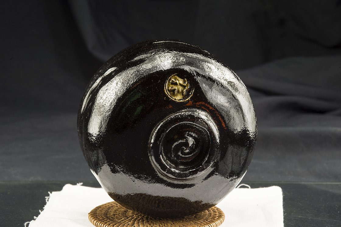 Szintén raku technikát használ, de főként egy árnyalatú, ámbra színű mázzal az Ohi kerámia, aminek nagymestere a közelmúltban járt Magyarországon, erről itt számoltunk be.