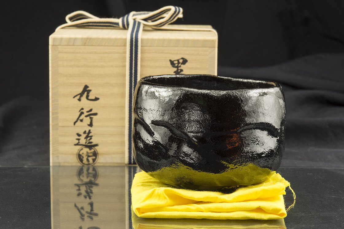 Kuro raku chawan matcha teáscsésze Waraku műhely