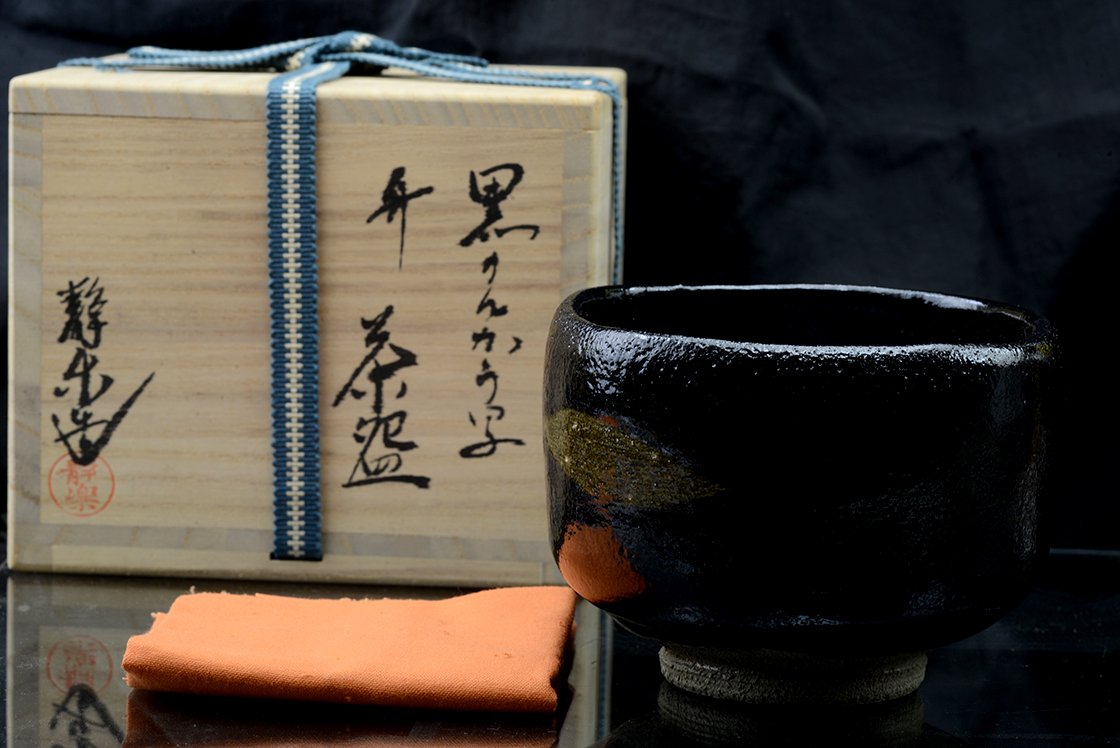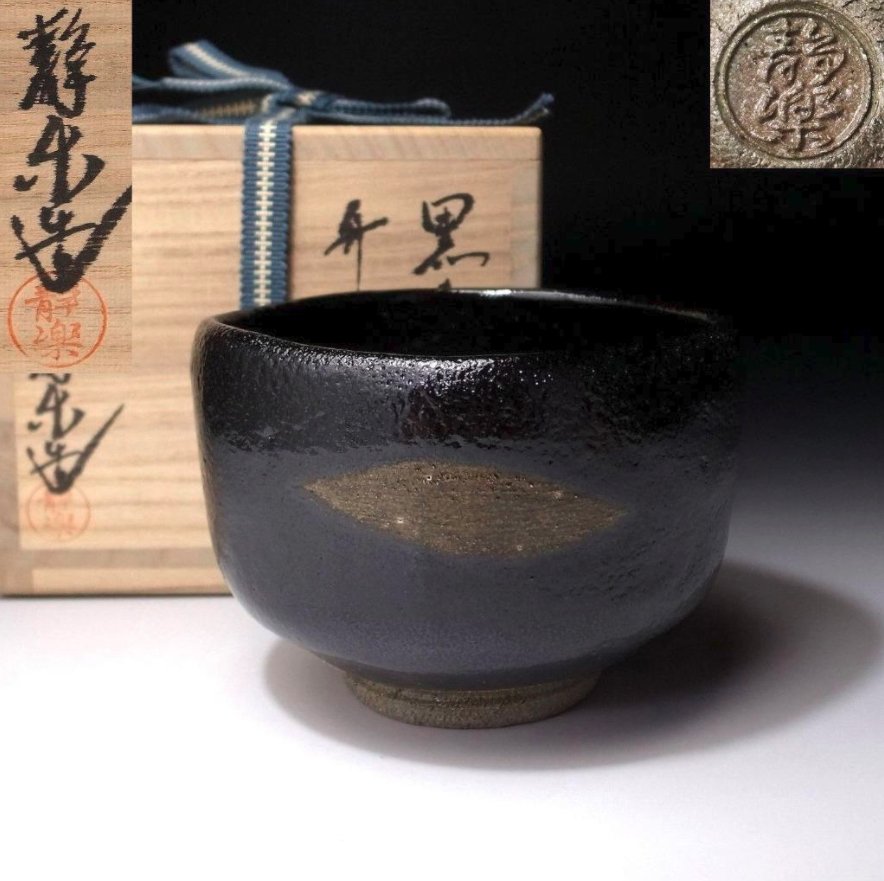 Kuro raku chawan matcha teáscsésze Nishimori SeiRaku műhelyéből.