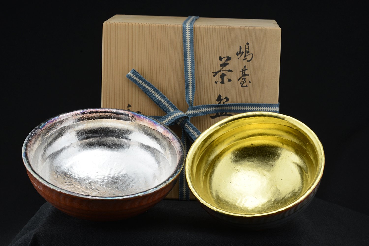 A shimadai az újév teaszertartásának díszes, gyönyörű aka raku készlete, a szokásosnál szélesebb 14,5-17,5 xm széles chawanokkal. Egyik a régi évet cipeli, a másik az újba vezet át.