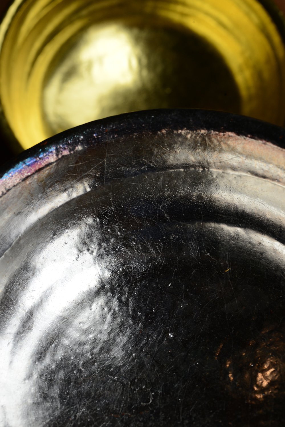 Szintén raku technikát használ, de főként egy árnyalatú, ámbra színű mázzal az Ohi kerámia, aminek nagymestere a közelmúltban járt Magyarországon, erről itt számoltunk be.