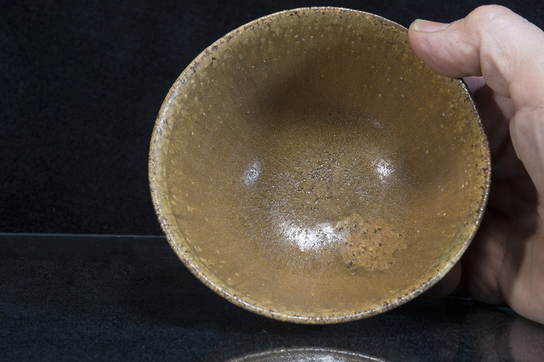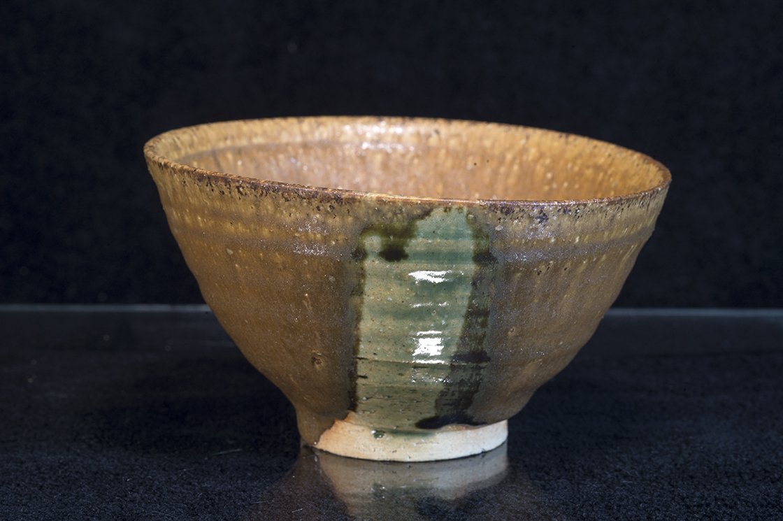 Seto teáscsésze, ami Reikichi Kato (1953- ) műhelyében született, 12.5 cm átmérőjű, 6.7 cm magas. Kato kétszer nyerte el a Nitten Japán Művészeti Kiállítás fődíját a kék szalagot.