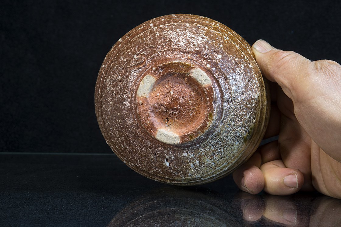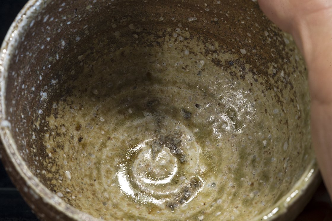 Ezen a csészén a shigaraki égetett hamumáz mintájának legjobb jellegzetességeit láthatjuk. A csészére a kemencében leülepedett hamu a tomboló tűzben megolvadt és mázként díszíti a csészét.