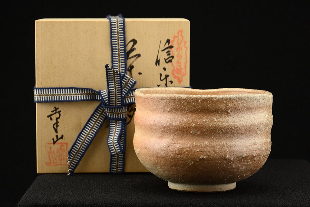 Shigaraki 信楽焼 chawan teáscsésze, ami 12 cm átmérőjű, 8,8 cm magas és átlagos, szép csészének mondható, amit minden tisztességes shigaraki műhelyben árulnak és mutatnak az utcáról betérő vendégnek. Fatüzelésű, többlépcsős kemencében égették a Hohzan műhelyben. Egyik arca pirult, ásványos, másik fele meg kelt tészta. A Shigaraki emlékszik a teákra, patinásodik és szépül az idő múlásával.
