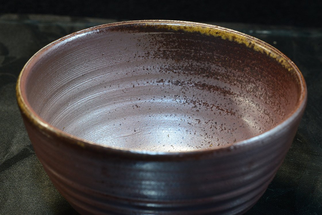 A Tamba kerámiákat hatalmas, domboldalba épített, függőlegesen tagolt noborigama kemencerendszerekben, fával égetik, a mintázat több-kevésbé véletlenszerű, kevésbé akkor, amikor a keramikus hamut, növényi részeket, ásványokat potyogtat, helyez el a csésze felületén. Ennek a csészének a mintázata természetes, a vörös fordult a tűz felé, a hamumázas rész a kemence oldala felé.
