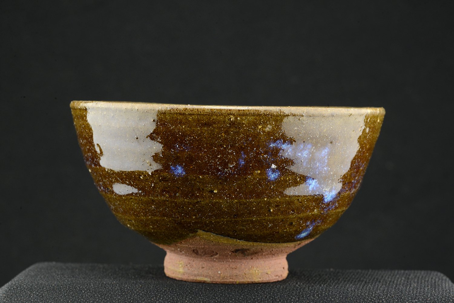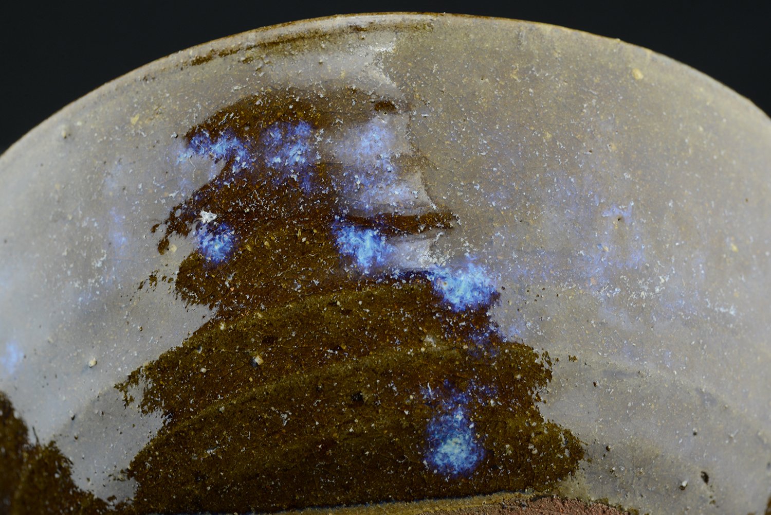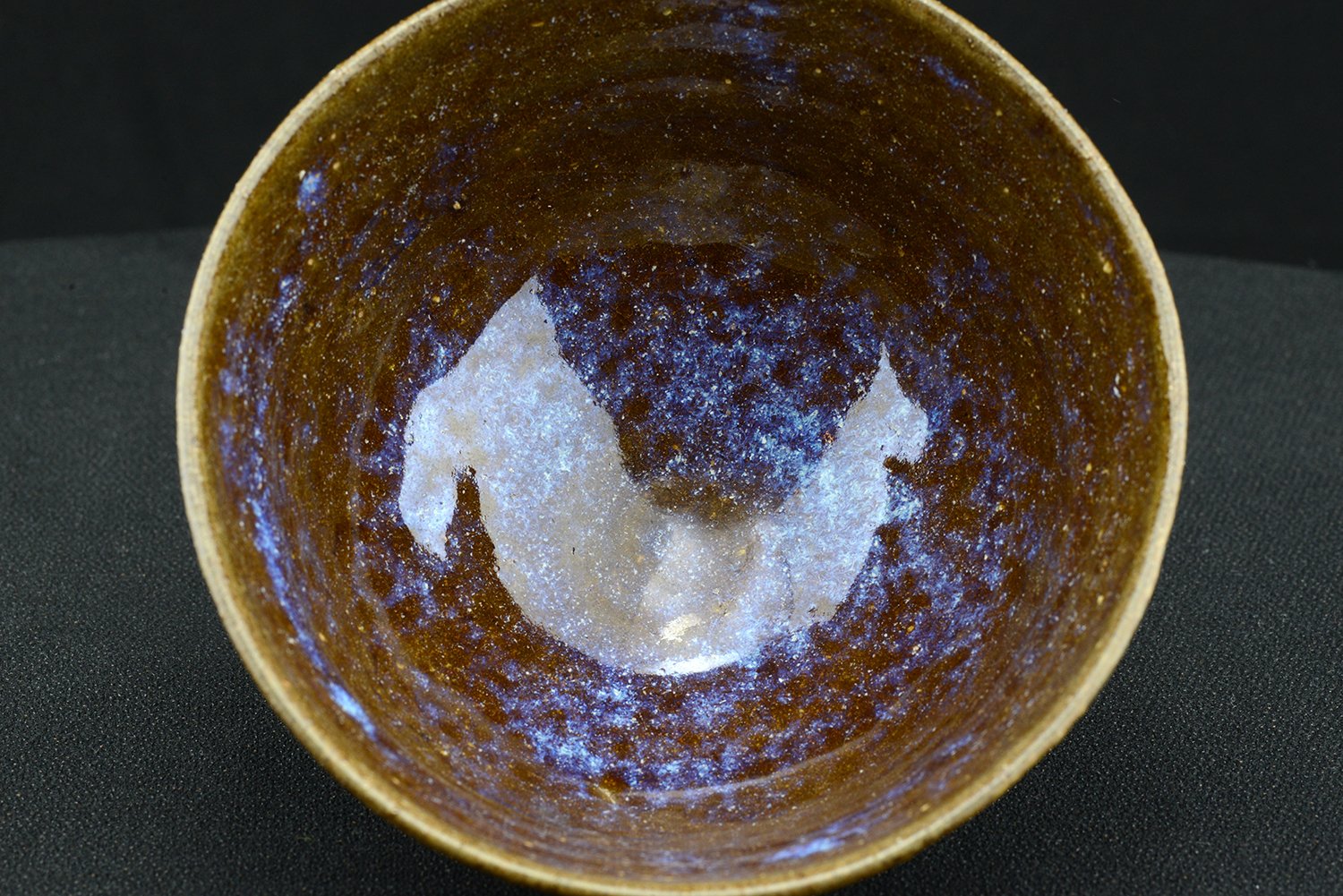 Ezen a gyönyörű csészén viszont van máz, ún. galaxis máz, az alapmáz pedig épp a máznélküli Tamba színeit idézi.