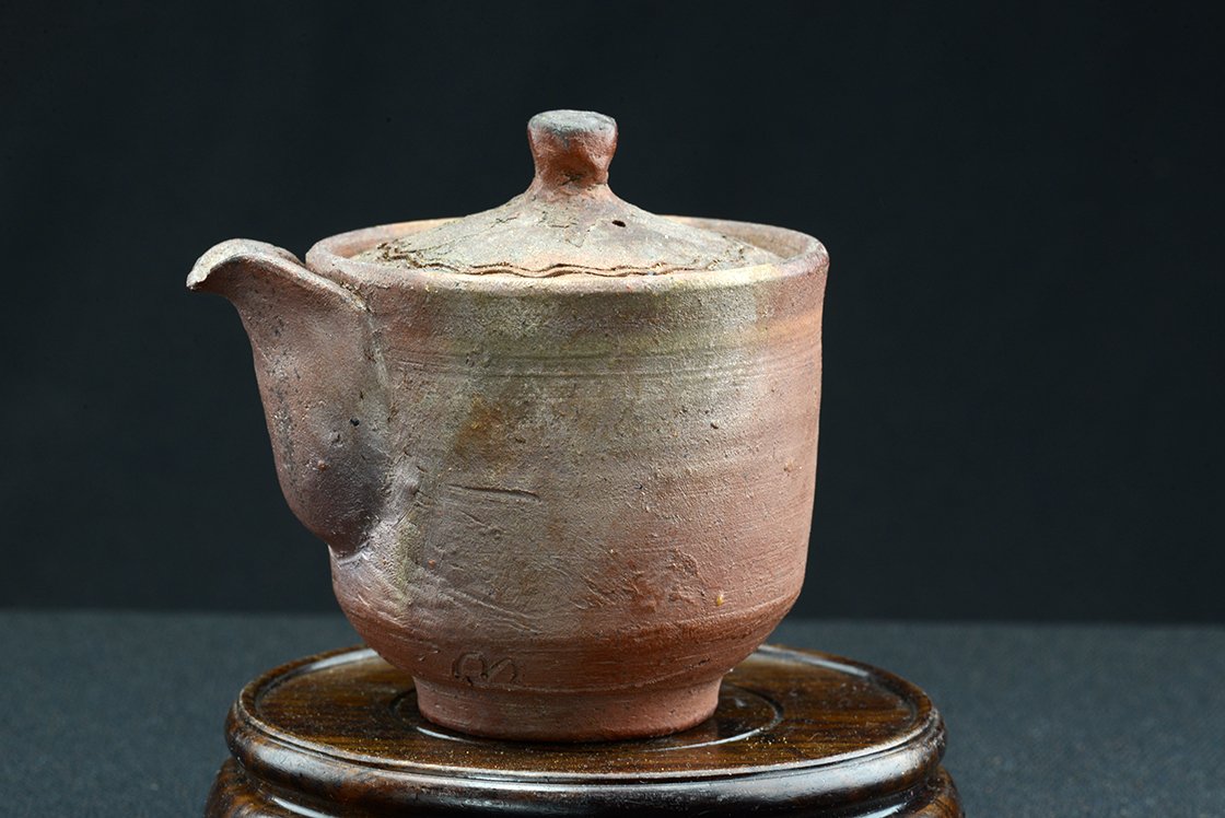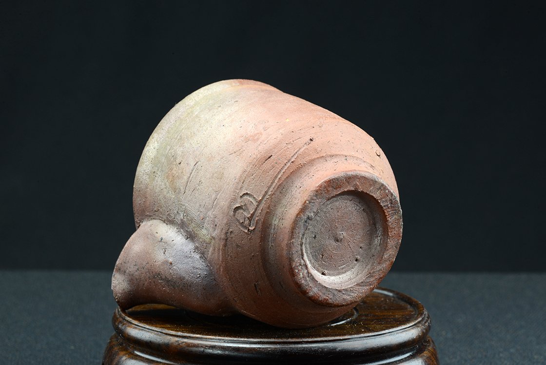 Csak mi nevezzük antiknak, valójában új darab a Santen gama pecsétjével a Kamura műhelyből. 9 cm magas, a csőrével együtt 10 cm, anélkül 8 cm átmérőjű. Elnagyolt, nyers felületű, érdekes darab.