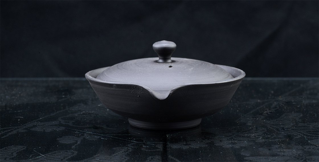 Ez a shiboridashi teáskanna füstre zárt kemencében égett feketére, felülete sima, alján a Tokoname mester pecsétje, a dobozban az igazolása.