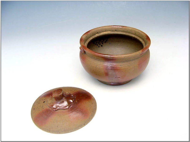 Finom, a szokásos vastag, bumfordi, masszív, földből kiszakított tárgy helyett kifinomult hidakusi díszítésű teáskészlet, ami természetesen bármilyen teához használható. Hoihin, kiöntővel és öt csésze jelzett fadobozban.