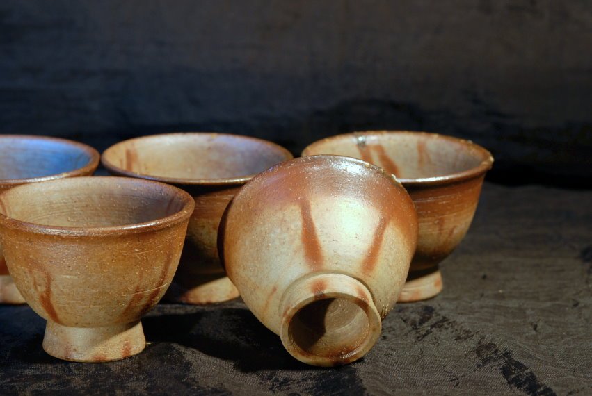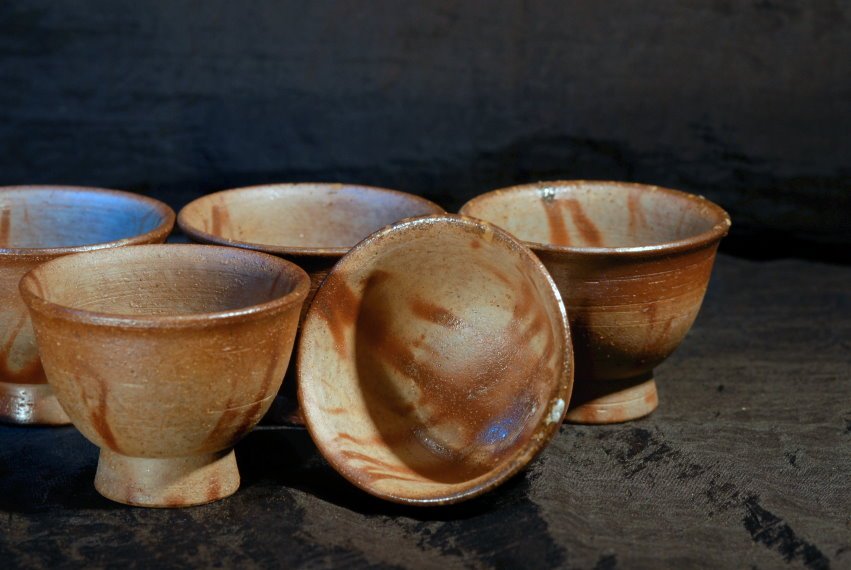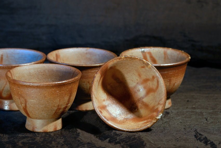 Masszív hoihin, kiöntővel és öt csészével Issei Ohira műhelyéből.