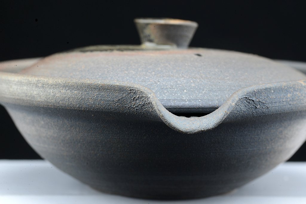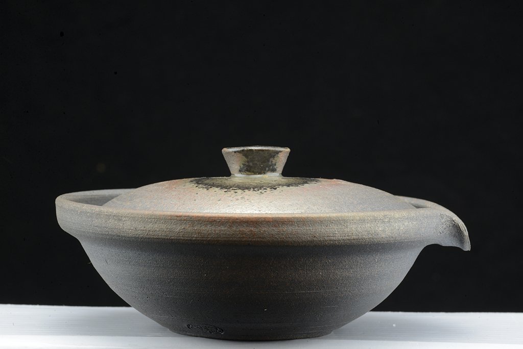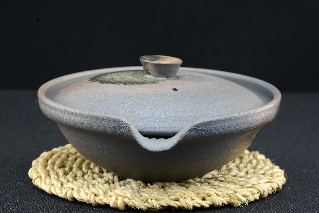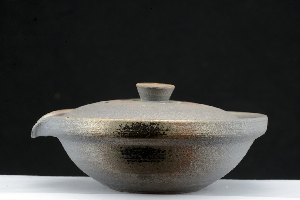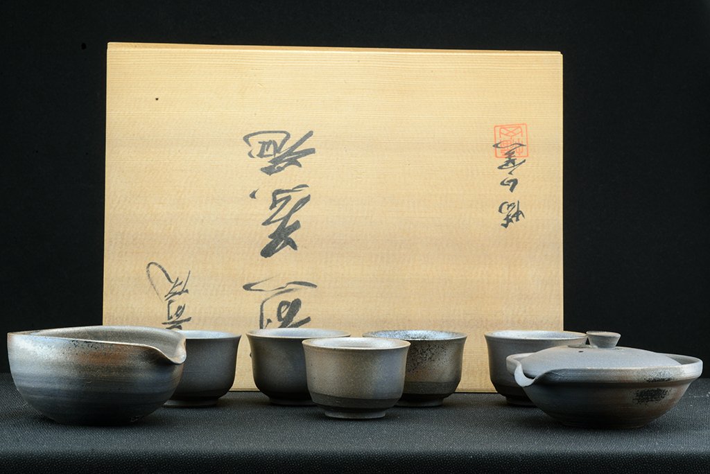 Ha megkérdik, melyik tea áll a szívemhez a legközelebb, akkor tudok mondani párat. Ha ugyanezt kell megtennem a teákhoz használt eszközök anyagára és stílusára, a kerámiára, itt is tudok mondani párat és a bolt kínálata el is árulja az ízlésünket. Finom, kézzel festett porcelán, bizen, shigaraki, tanba. De a legkülönösebb mind közül nekem mégiscsak az echizen, ami az utóbbiakhoz hasonlóan máz nélküli, és magas hőfokon fatüzeléses kemencerendszerekben égetett kerámia. Ennek a fémes visszafogott eleganciája tartalmazza nekem mindazt, amit rusztikusról és letisztultról gondolok. Nem könnyű hozzájutni, kis kerámia központ, értékes nevekkel. Ez a készlet Hatayama műhelyében készült.