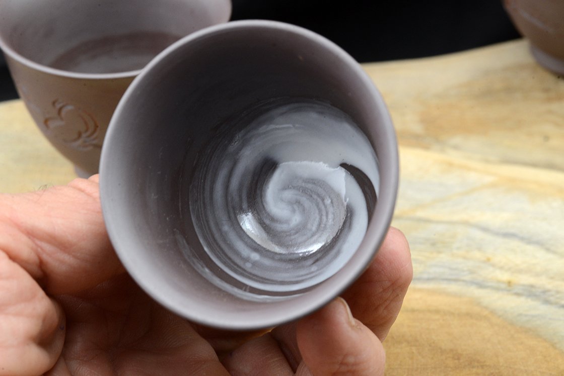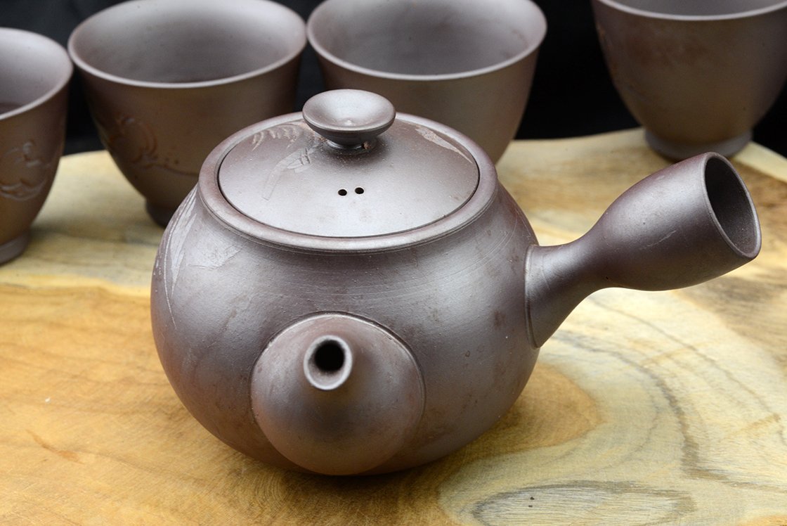 Mázatlan, fatüzes kemencében, magas hőfokon égetett banko teáskészlet