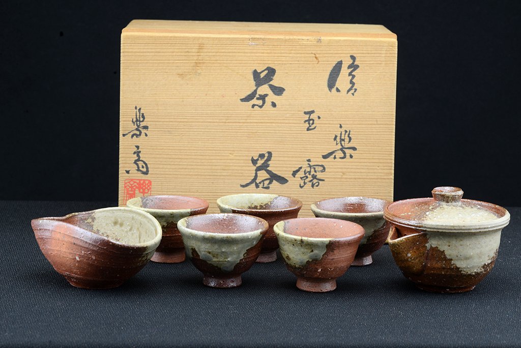 Shigaraki fatüzes japán teáskészlet 4. Rakusai Takahashi keze alól.