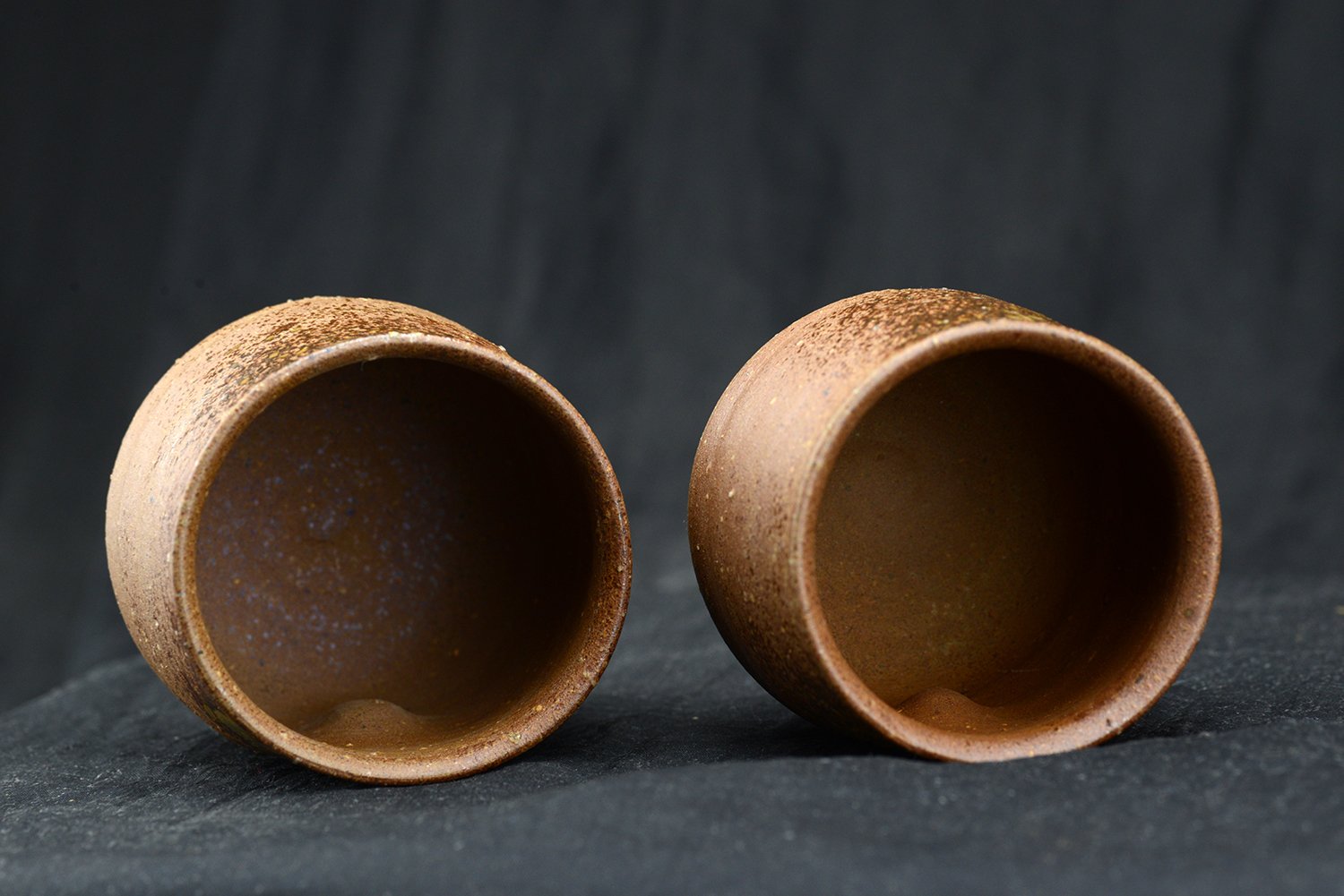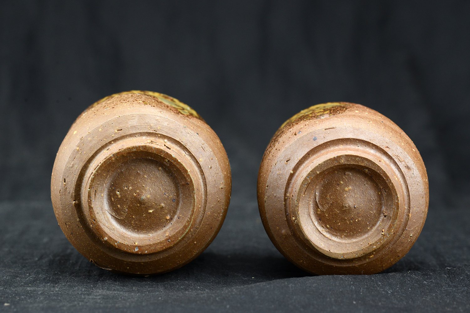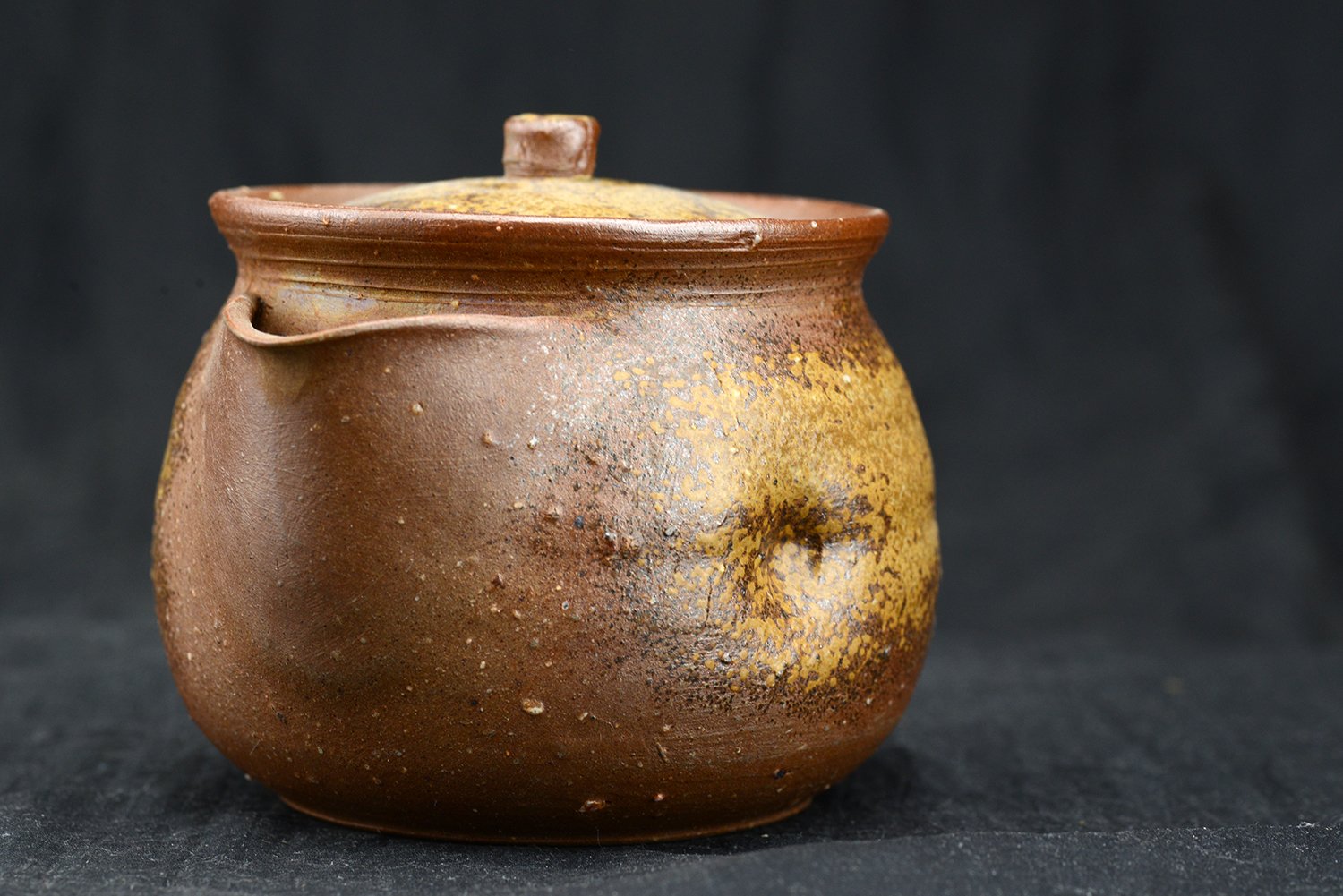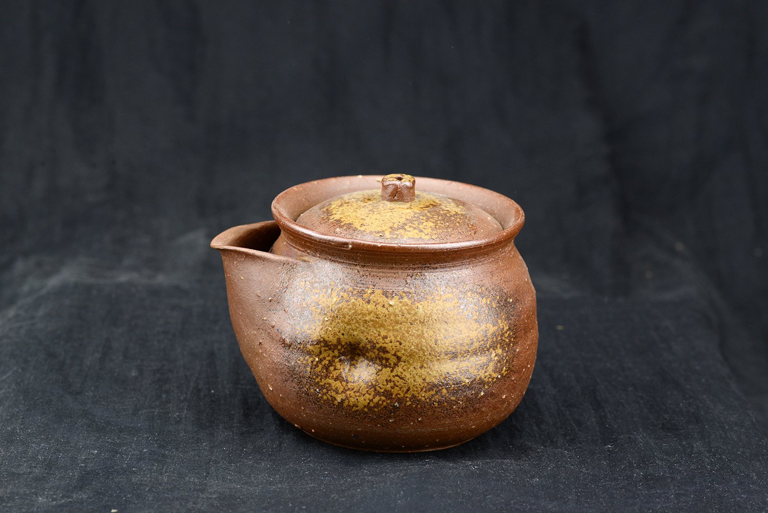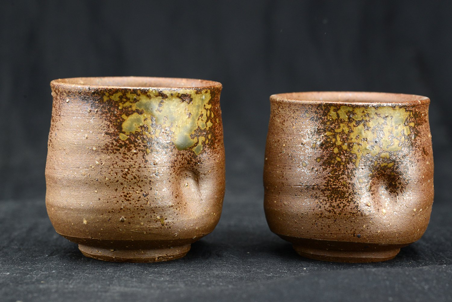 Toho Kimura teáskészletei a bizen jólfésült oldalát mutatják be, finom gomodake „természetes” díszítéssel. Nagyon pontos készletek.