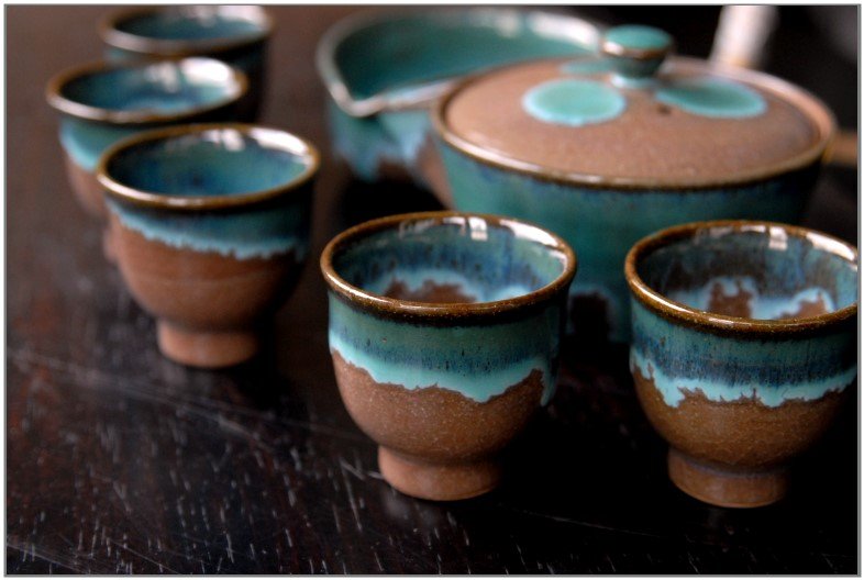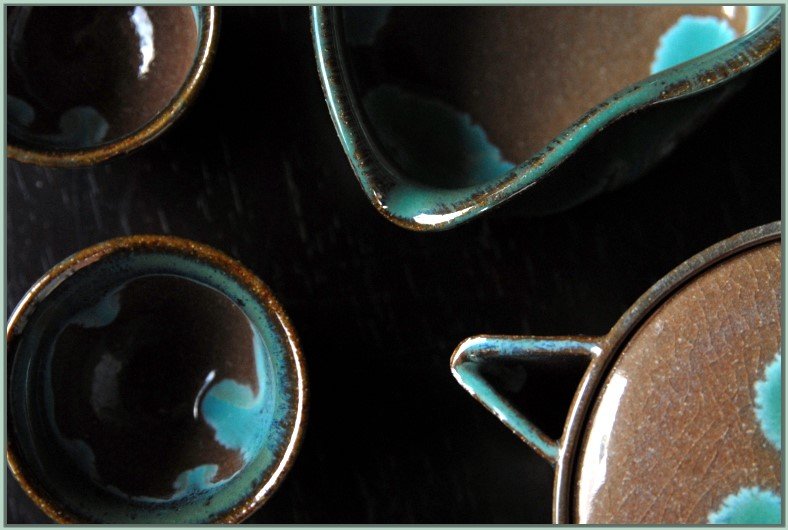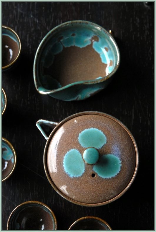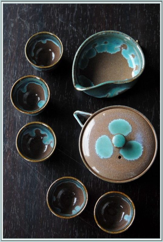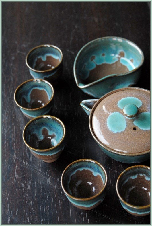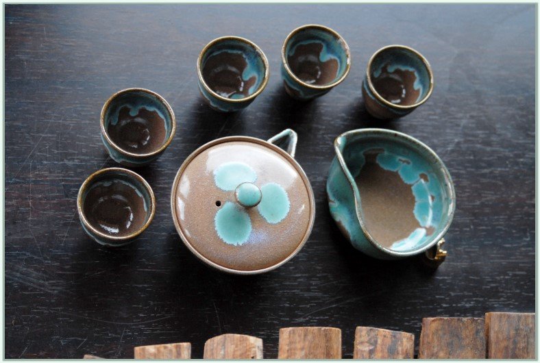 Türkiz tea folyó Agano japán teáskészlet