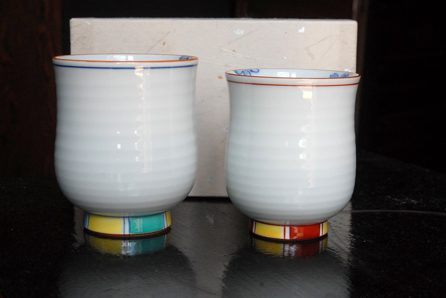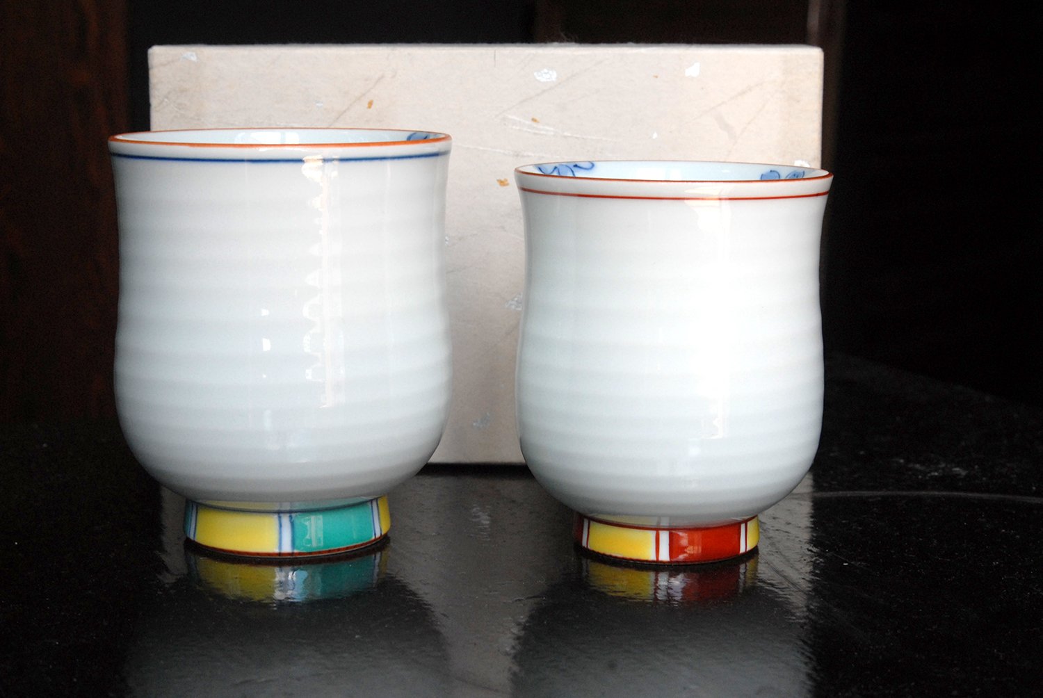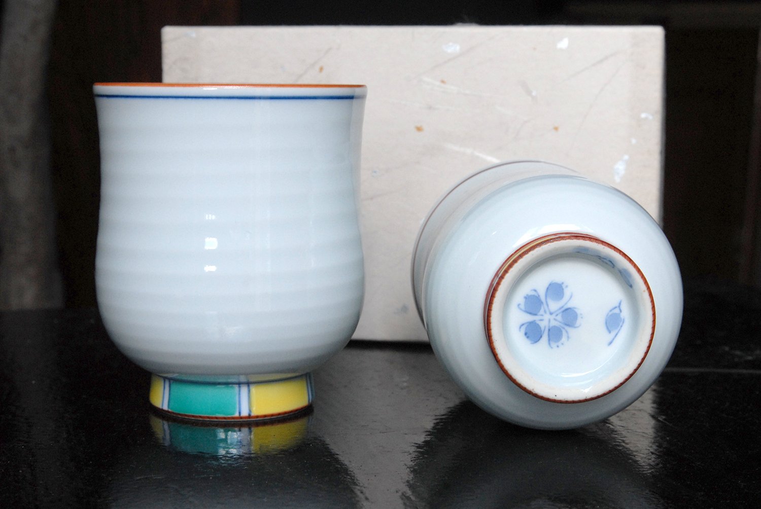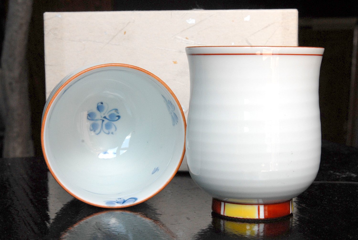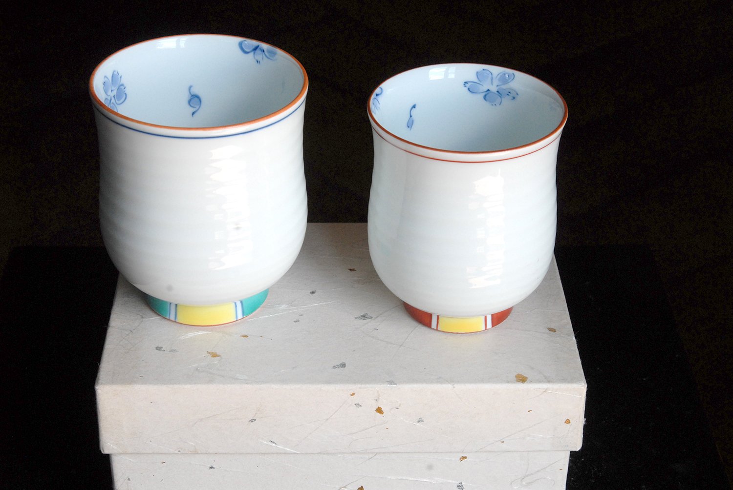 Később a japánok is alkalmazkodtak ehhez, mindenesetre az exportra készült imari porcelánt Arita-yakinak hívják. Ez a csészepár kézzel festett és jól mutatja az itteni finom, fényes porcelán tulajdonságait. A csészék átmérője 7,8 cm, magassága 9 cm.