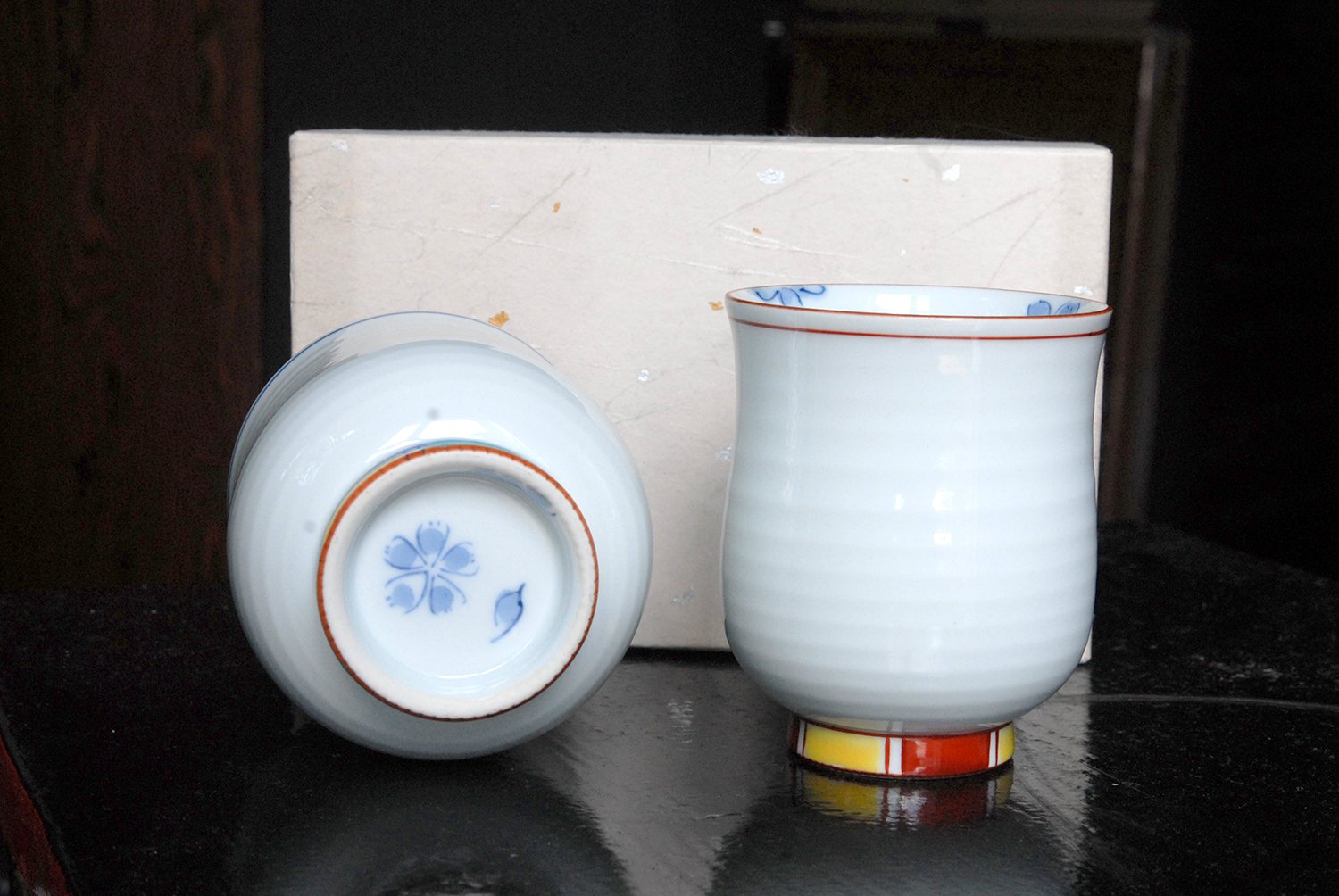 Az ár a jelzett fadobozban tárolt csészepárra vonatkozik.