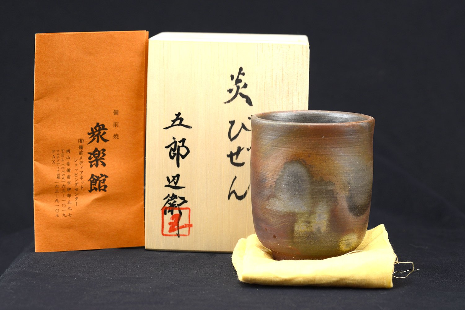 Bizen yunomi teáscsésze a Gorobe műhelyből. A Gorobe gama régi bizen műhely, a neve Gorobe arra utal, hogy a Bizen egyike a hat ősi japán kerámiaközpontnak. A csésze átmérője 7, magassága 9,5 cm.