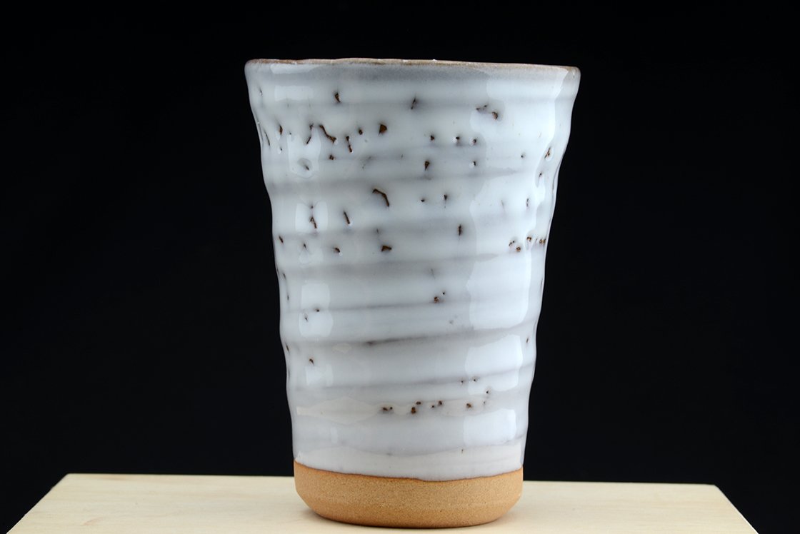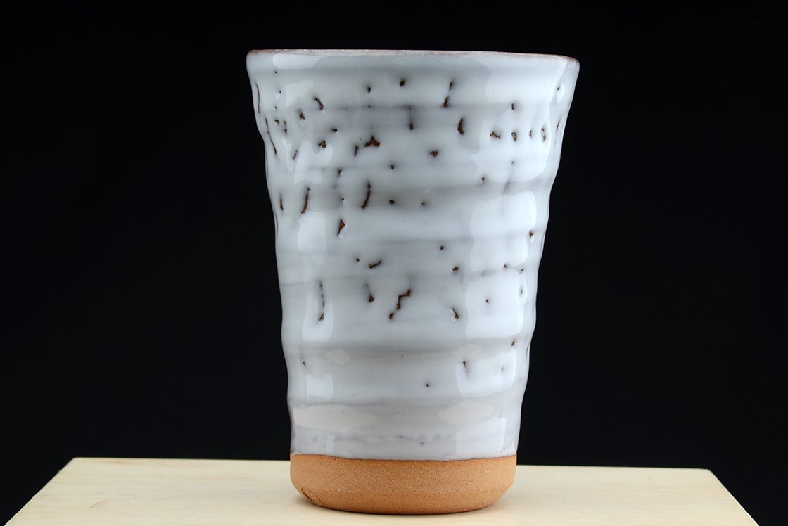Shibuya Deishi 渋谷泥詩 műhelyében (Odaiba műhely 御台場窯).készült szép teáscsésze pár. A megszokottnál kicsit nagyobb, japán méretekhez képest már-már eltúlzott, európai szemnek normál teáscsésze, ami 12,5 cm magas, 9,1 cm széles. A Hime Hagi név a finomra őrölt alapagyagot jelöli.