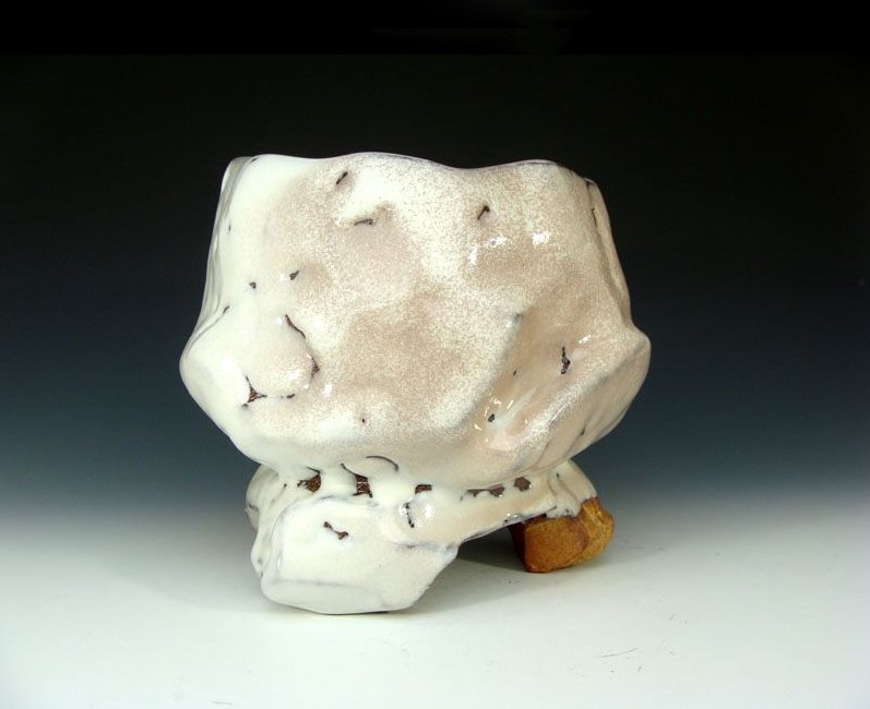 Zsenialitása abban áll, hogy a tárgykészítés során elmozdult a kisplasztika, a szobrászat felé. Csészéi határtalanok, vagy nehezen behatárolhatóak, megnevezhetetlen formavilágú geometrikus tájat építenek.