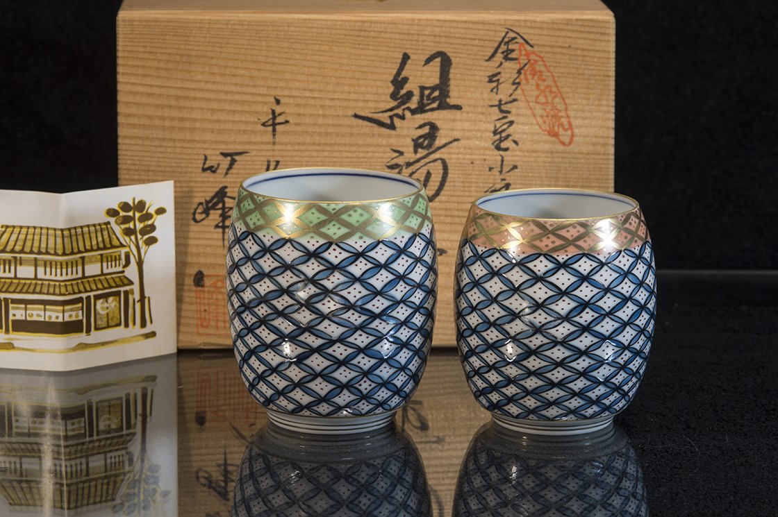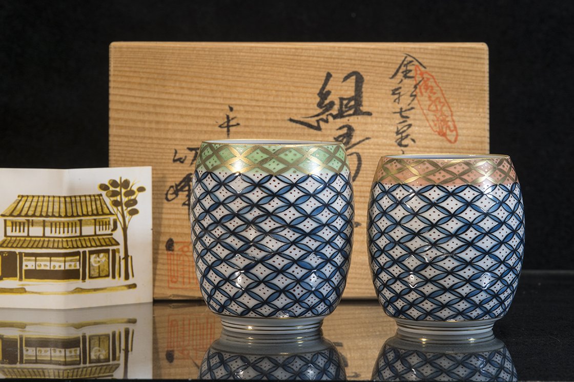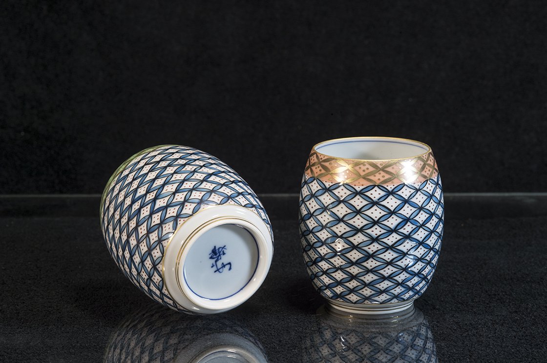 A csészepár 2. Chikuho Furukawa (1923 – ), (2.Chikuho Heian) műhelyében készült.
