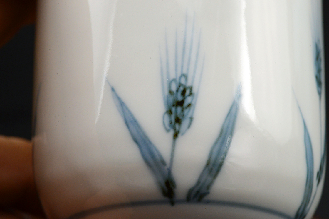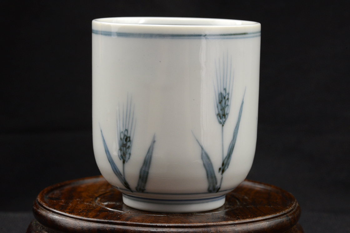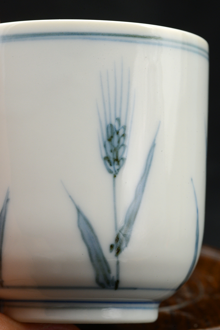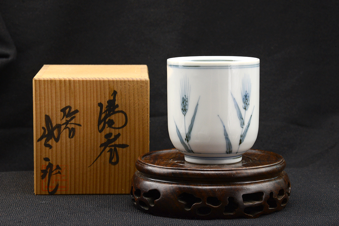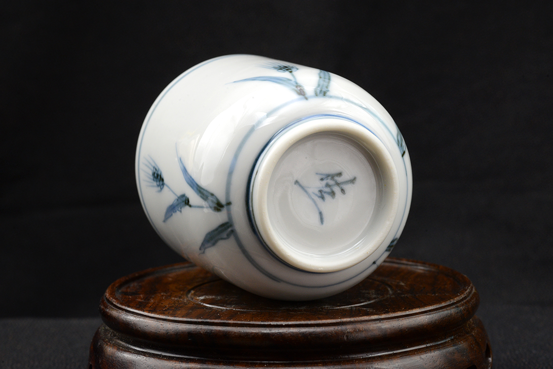 Kézzel festett porcelán teáscsésze az elsőrangú kutani keramikus Saichi Matsumoto (1930- ) műhelyéből..