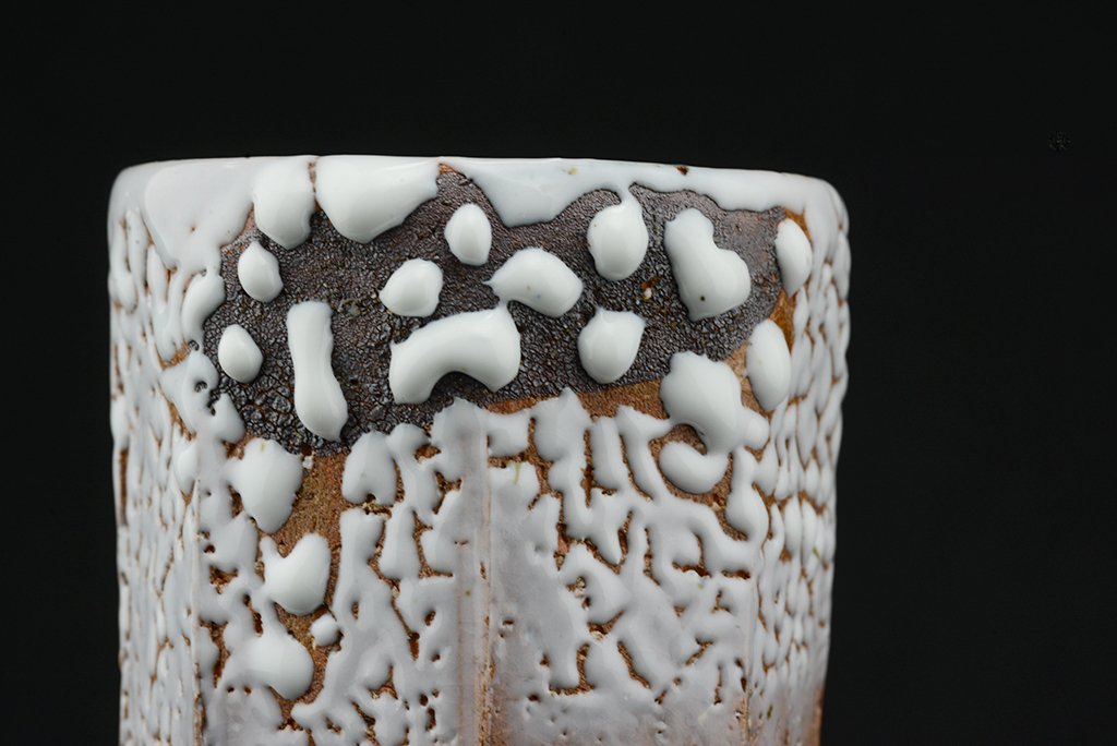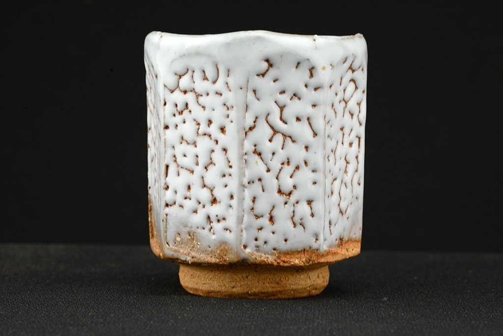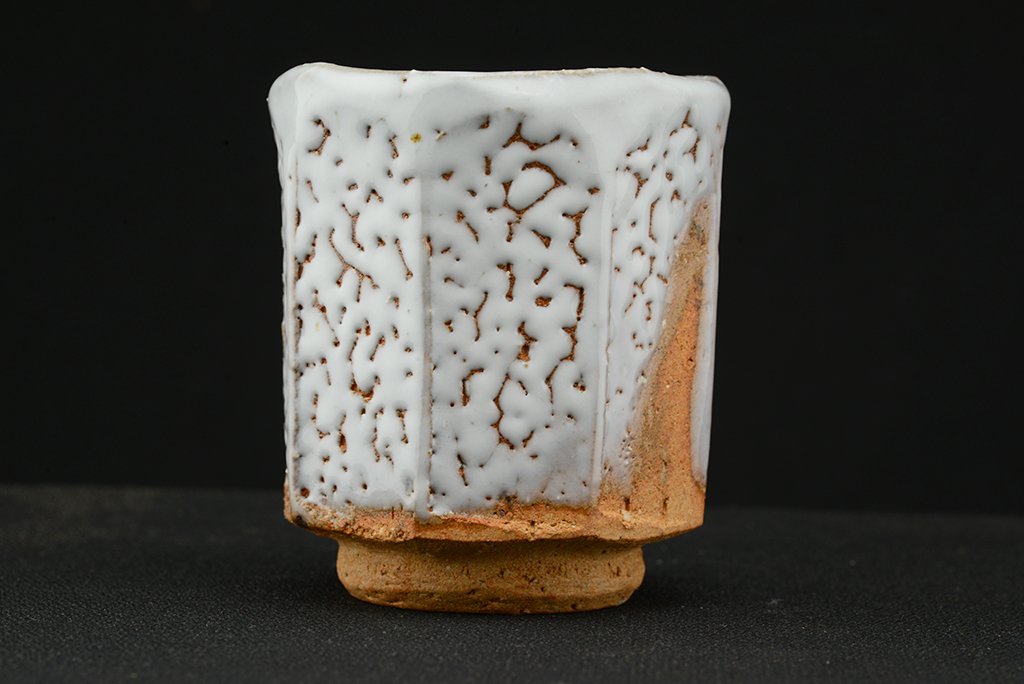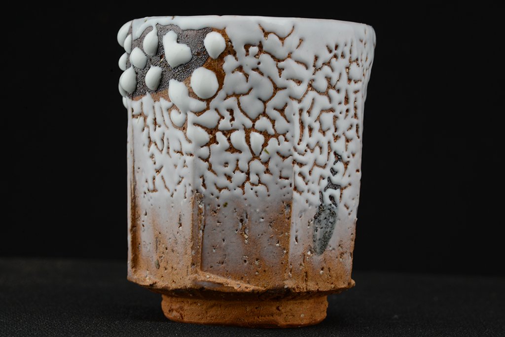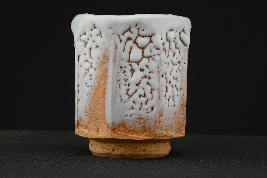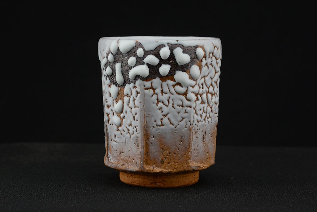 Shibuya Deishi 渋谷泥詩 műhelyében (Odaiba műhely 御台場窯) készült Oni Hagi Yunomi teáscsésze pár. A nagyobbik csésze 7.5 cm x 9.0 cm,  a kisebbik 7,0 cm x 8.4 cm.