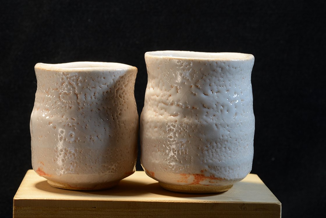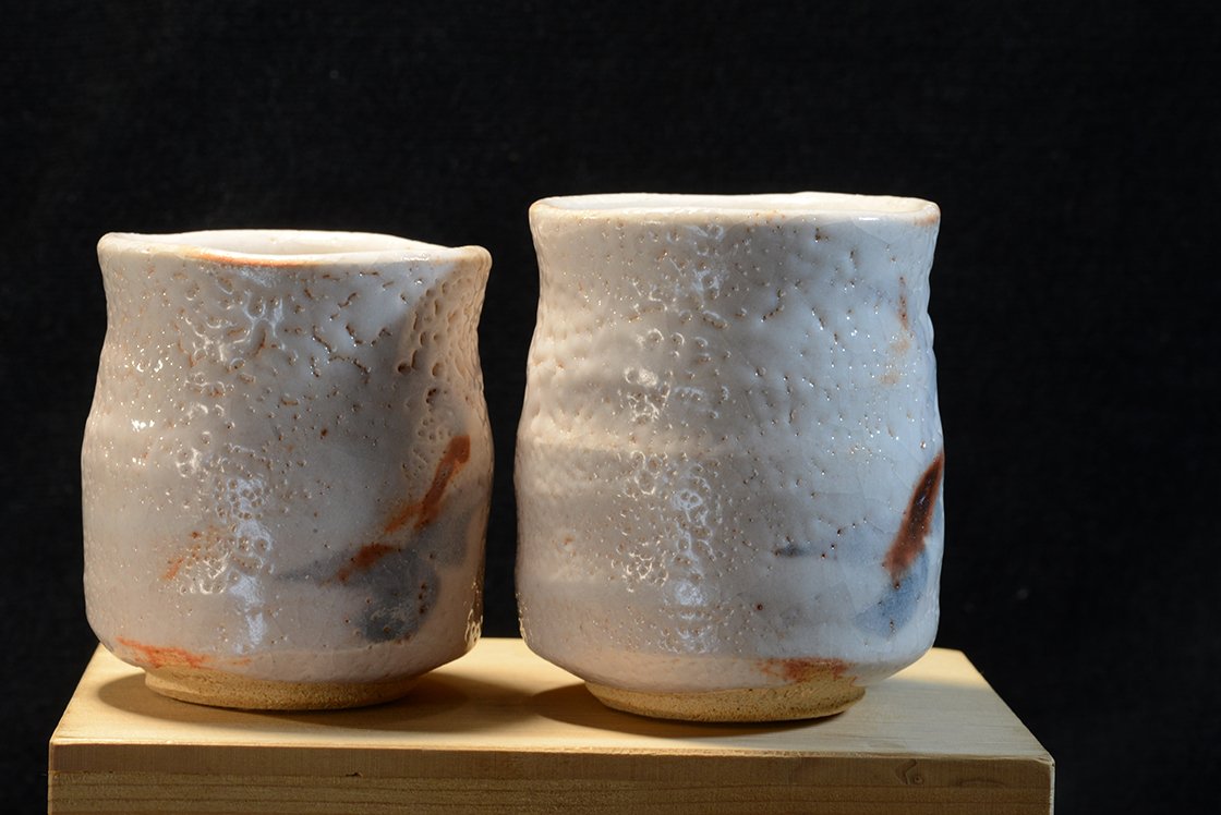 A Shino volt az első kerámiastílus Japánban, ami fehér mázat használt, és ez volt az első kerámia, ami szabad motívumokkal engedte díszíteni a kerámiát. A csészepár Sawada Shuichi (澤田秀一) műhelyében készült  Shusen Toenben. A mester pecsétje: 秀泉.