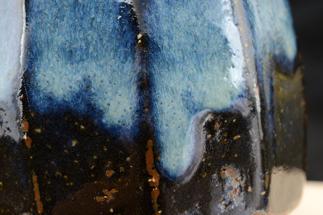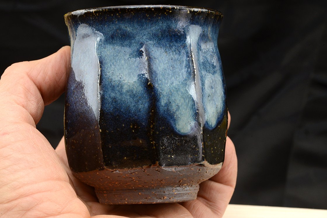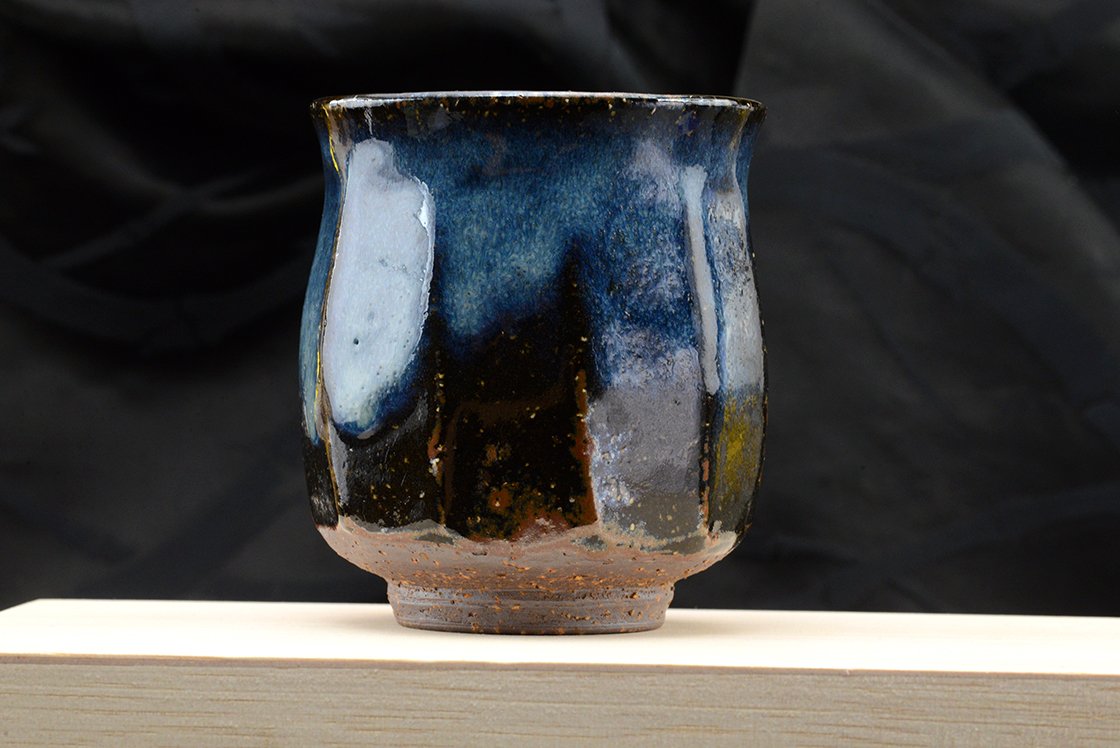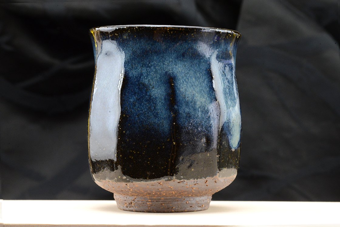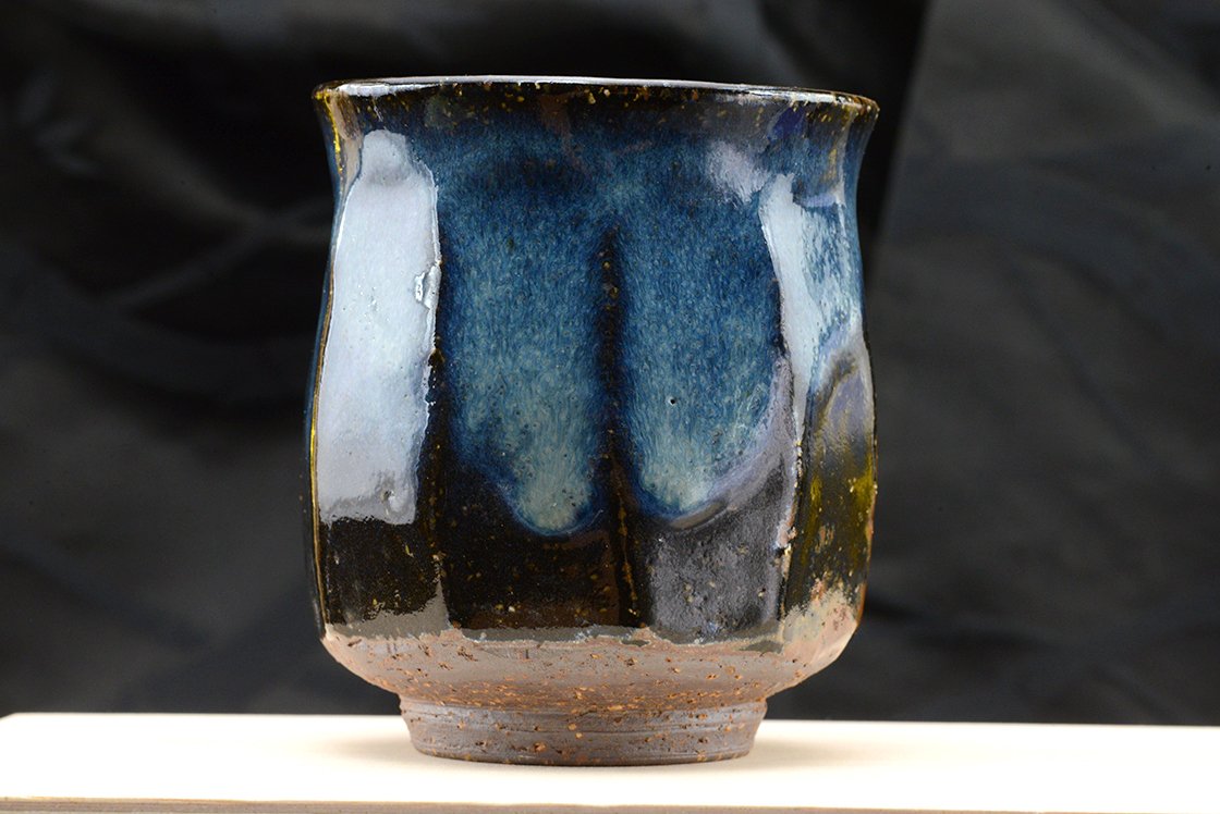 A csészepár Hagi stílusú kerámia, máza kobaltkék Hagi máz, amit a műhely alapítója Yamane Seigan (1952-) talált fel.