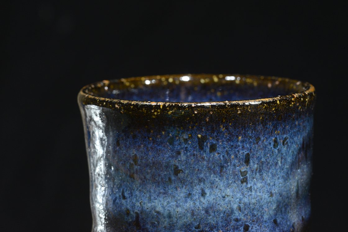 A csészepár Hagi stílusú kerámia, máza kobaltkék Hagi máz, amit a műhely alapítója Yamane Seigan (1952-) talált fel.