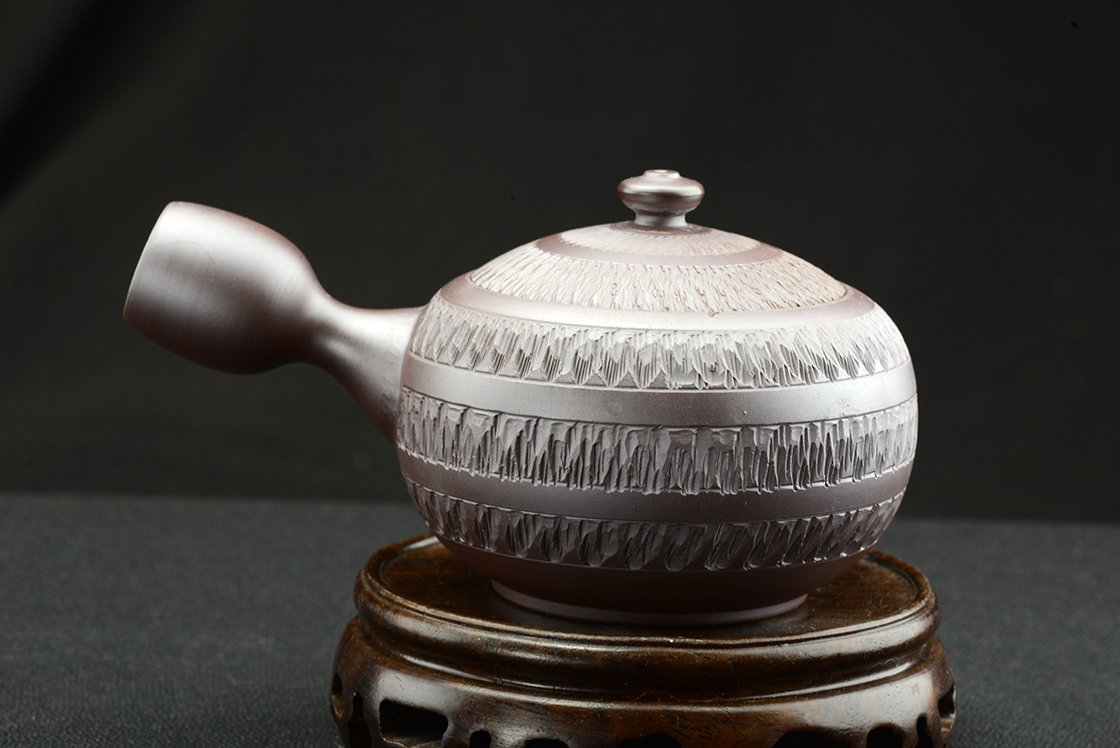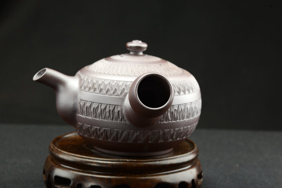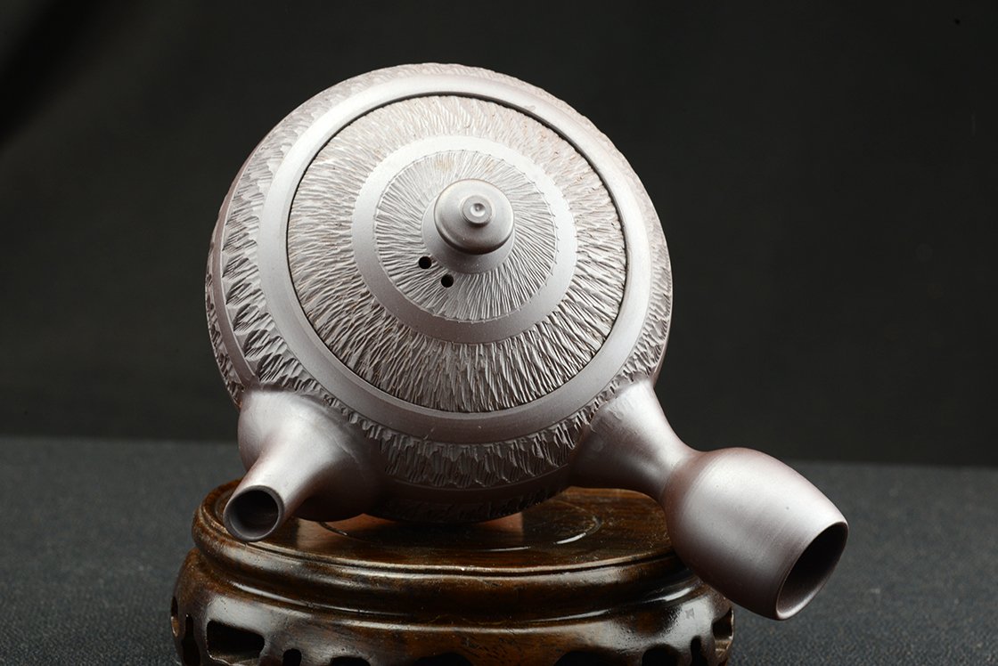 600 ml űrtartalmú hamumázas oni hagi stílusú teáskanna Shibuya Deishi műhelyéből.